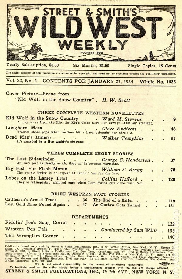 Wild West Weekly (1927-1943 Street & Smith) Pulp Vol. 100 #3Tags: Pulp AdventurePublished Feb 1936 by Street & Smith.