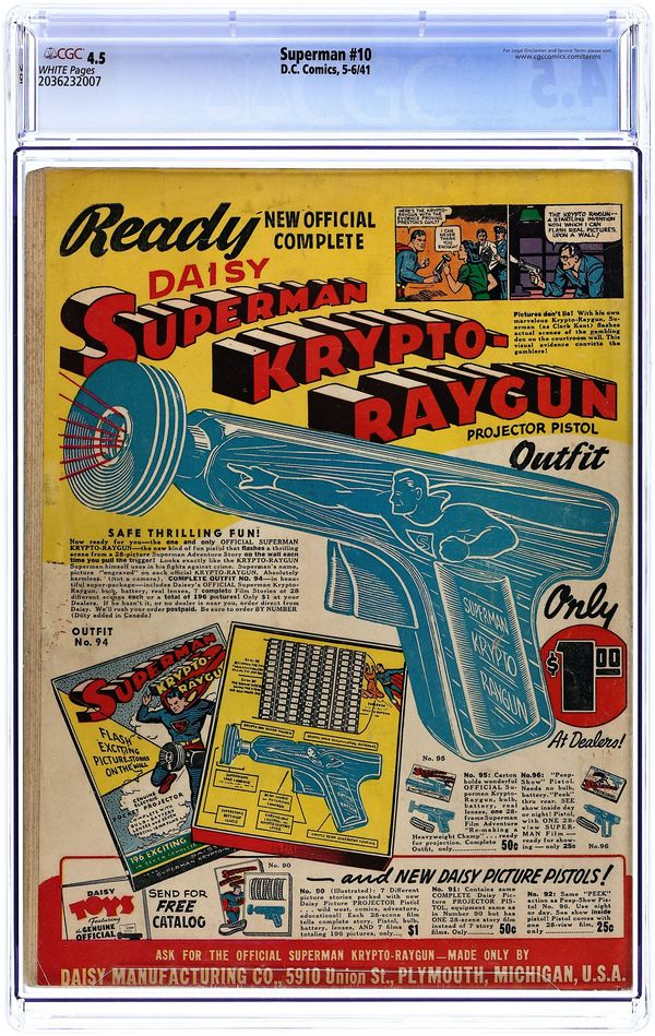 Cover art by Jack Burnley. Dimensions of Danger!, script by Don Cameron [as Jerry Siegel], pencils by Ira Yarbrough [as Joe Shuster], inks by George Roussos; Lois Lane says "Kltpzyxm" and accidentally transports herself to Mxyztplk's home world. Private Pete humor page by Henry Boltinoff. The Country Doctor! starring Superman, script by Bill Finger [as Jerry Siegel], pencils by Ira Yarbrough [as Joe Shuster], inks by George Roussos; An under-appreciated doctor is appalled when his doctor son refuses to practice medicine alongside his elderly father in a small country area. Man With the Rocket text story by Blair Bolton. Lois Lane story, script by Whitney Ellsworth [as Jerry], pencils by Ed Dobrotka [as Joe]. The Compass Points to Murder!, script by Bill Finger [as Jerry Siegel], pencils by Ira Yarbrough [as Joe Shuster], inks by George Roussos. 52 Pages, Full Color. Cover price $0.10.