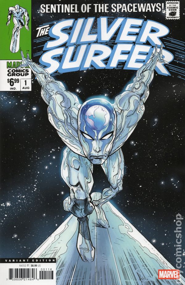 Foil Cover. (W) Stan Lee (A) John Buscema (CA) John Buscema The Sentinel of the Spaceways' classic origin story! The Silver Surfer, former herald of Galactus, had captivated readers of FANTASTIC FOUR and established himself as one of Stan Lee's favorite Marvel Comics characters - and so, in 1968, Lee united with legendary artist John Buscema to spin new tales of the Surfer in his very own series! Trapped on Earth, the ever-reflective Surfer ponders his fate in life - and his thoughts wander back to his days as scientist Norrin Radd on his home planet of Zenn-La! Discover how and why he sacrificed everything - including his future with his great love, Shalla-Bal - to serve the World-Eater! It's one of the all-time great Marvel comic books, boldly re-presented in its original form, ads and all! Reprinting SILVER SURFER (1968) #1. Marvel is reprinting the ground-breaking first seven issues of Silver Surfer as they originally appeared! Cover price $6.99.