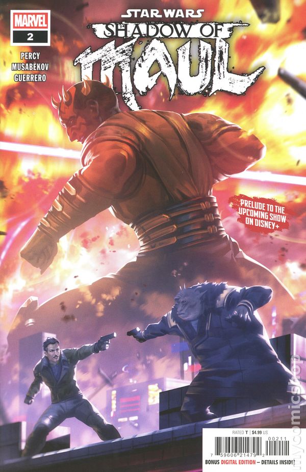 (W) Benjamin Percy (A) Madibek Musabekov (CA) AKA A PULPY, EXCITING PREQUEL SERIES SET BEFORE THE EVENTS OF THE UPCOMING DISNEY+ SHOW! Welcome to Janix, a neon-lit, shadow-soaked maze of a planet that lies beyond the reach of the Empire. Captain Brander Lawson is doing his best to navigate the law in a lawless territory. He's joined by his partner, a droid nicknamed Two Boots, as they face off against scheming crime bosses...and as the looming threat of the shadow lord, Maul, nears. 32 pages, rated T, full color Cover price $4.99.