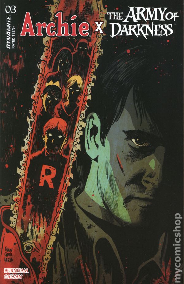 Limited 1 for 7 Retailer Incentive Variant Cover. (W) Erik Burnham (A) Bill Galvan (CA) Francisco Francavilla DO YOU WANT THE BAD NEWS, OR THE WORSE NEWS? The bad news is that Archie Andrews has accidentally summoned the Army of Darkness to the peaceful streets of Riverdale — and thats pretty bad news! But the good news is that when Archie read the cursed passage in question from the pages of the Necronomicon Ex Mortis, he didnt properly complete the incantation — which means theres still a chance to banish the Deadites back to the infernal realms. Unfortunately, it also means that if the Deadites can get hold of Archie and force him to read the incantation properly, theyll be unstoppable. But in order to do that, theyll first have to get past a certain one-handed hero — and hes feeling lucky! Intrepid investigators ERIK BURNHAM and BILL GALVAN run down the story of the century in Archie X Army of Darkness #3 — featuring supporting coverage from GALVAN, FRANCESCO FRANCAVILLA, LAURA BRAGA, CRAIG CERMAK, and STUART SAYGER! Cover price $4.99.