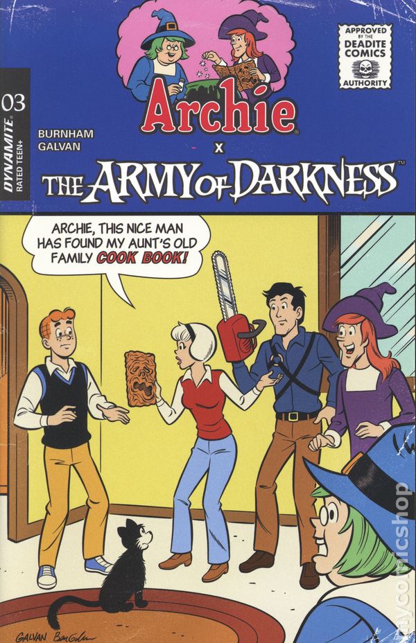 Limited 1 for 7 Retailer Incentive Variant Cover. (W) Erik Burnham (A) Bill Galvan (CA) Robert Hack DO YOU WANT THE BAD NEWS, OR THE WORSE NEWS? The bad news is that Archie Andrews has accidentally summoned the Army of Darkness to the peaceful streets of Riverdale — and thats pretty bad news! But the good news is that when Archie read the cursed passage in question from the pages of the Necronomicon Ex Mortis, he didnt properly complete the incantation — which means theres still a chance to banish the Deadites back to the infernal realms. Unfortunately, it also means that if the Deadites can get hold of Archie and force him to read the incantation properly, theyll be unstoppable. But in order to do that, theyll first have to get past a certain one-handed hero — and hes feeling lucky! Intrepid investigators ERIK BURNHAM and BILL GALVAN run down the story of the century in Archie X Army of Darkness #3 — featuring supporting coverage from GALVAN, FRANCESCO FRANCAVILLA, LAURA BRAGA, CRAIG CERMAK, and STUART SAYGER! Cover price $4.99.