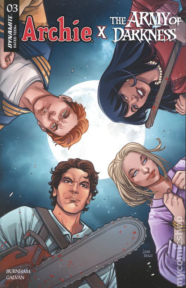 (W) Erik Burnham (A) Bill Galvan (CA) Laura Braga DO YOU WANT THE BAD NEWS, OR THE WORSE NEWS? The bad news is that Archie Andrews has accidentally summoned the Army of Darkness to the peaceful streets of Riverdale — and that’s pretty bad news! But the good news is that when Archie read the cursed passage in question from the pages of the Necronomicon Ex Mortis, he didn’t properly complete the incantation — which means there’s still a chance to banish the Deadites back to the infernal realms. Unfortunately, it also means that if the Deadites can get hold of Archie and force him to read the incantation properly, they’ll be unstoppable. But in order to do that, they’ll first have to get past a certain one-handed hero — and he’s feeling lucky! Intrepid investigators ERIK BURNHAM and BILL GALVAN run down the story of the century in Archie X Army of Darkness #3 — featuring supporting coverage from GALVAN, FRANCESCO FRANCAVILLA, LAURA BRAGA, CRAIG CERMAK, and STUART SAYGER! Cover price $4.99.