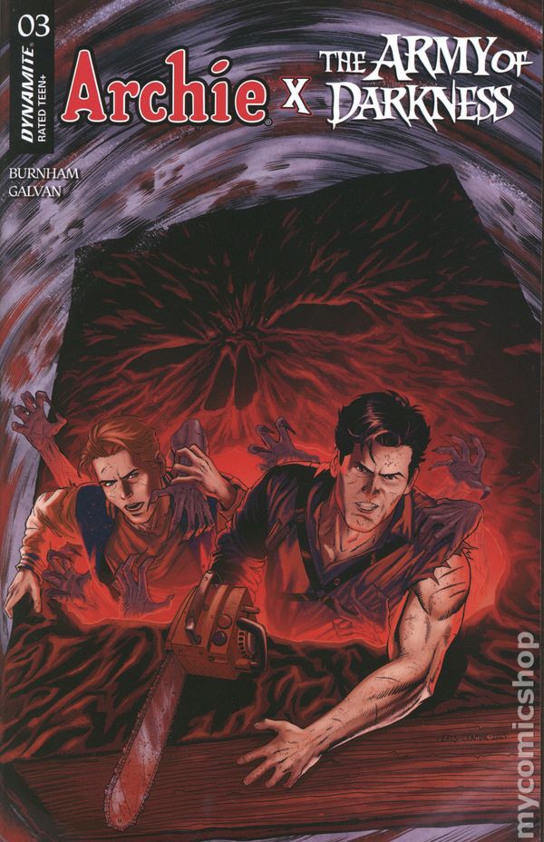 (W) Erik Burnham (A) Bill Galvan (CA) Robert Hack DO YOU WANT THE BAD NEWS, OR THE WORSE NEWS? The bad news is that Archie Andrews has accidentally summoned the Army of Darkness to the peaceful streets of Riverdale — and thats pretty bad news! But the good news is that when Archie read the cursed passage in question from the pages of the Necronomicon Ex Mortis, he didnt properly complete the incantation — which means theres still a chance to banish the Deadites back to the infernal realms. Unfortunately, it also means that if the Deadites can get hold of Archie and force him to read the incantation properly, theyll be unstoppable. But in order to do that, theyll first have to get past a certain one-handed hero — and hes feeling lucky! Intrepid investigators ERIK BURNHAM and BILL GALVAN run down the story of the century in Archie X Army of Darkness #3 — featuring supporting coverage from GALVAN, FRANCESCO FRANCAVILLA, LAURA BRAGA, CRAIG CERMAK, and STUART SAYGER! Cover price $4.99.