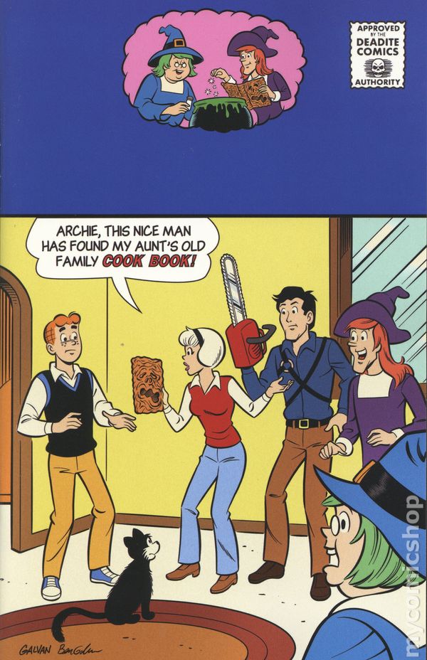 Limited 1 for 10 Retailer Incentive Variant Cover. (W) Erik Burnham (A) Bill Galvan (CA) Bill Galvan ITS A DEADITE PARTY! Reggies lake house soirée was supposed to be the social event of the season, but now it may prove to be the town of Riverdales swan song! Following Archie Andrewss unwitting awakening of the Army of Darkness, chaos — in the form of an undead horde — has descended upon the shore. With slavering evil literally at their doorstep, the gang has only one hope of making it out alive — the Savior of S-Mart, one Ashley J. Williams. Unluckily for them, the Chosen Ones car currently has four flat tires! 32 pages, full color, rated T+. Cover price $4.99.