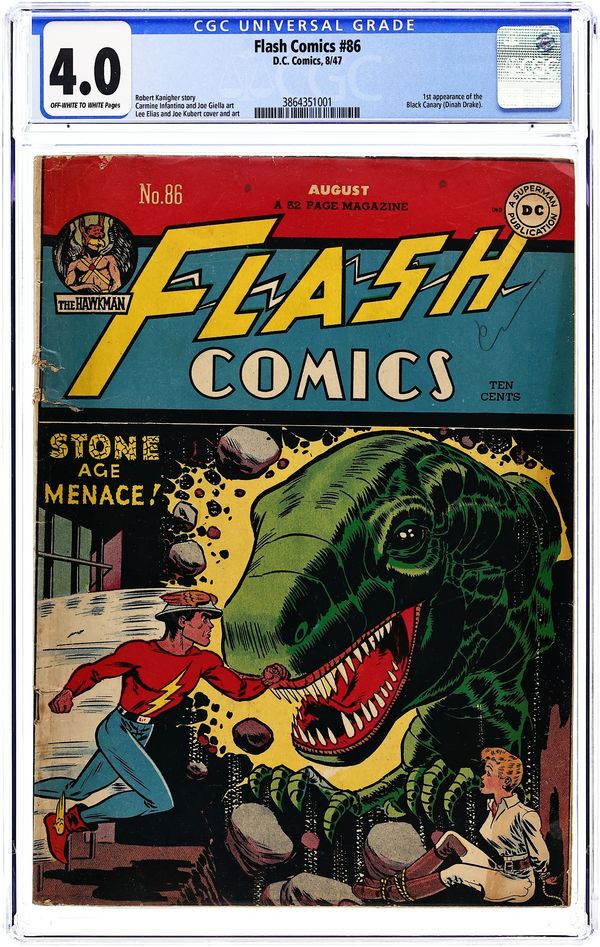 Flash stars in "Stone Age Menace," written by Robert Kanigher, pencils by Lee Elias, inks by Joe Kubert. Also includes: Ghost Patrol in "The Case of the Extra Ghost" by John B. Wentworth and Carmine Infantino; Johnny Thunder in "The Black Canary" written by Kanigher, pencils by Carmine Infantino, inks by Joe Giella; Ton o' Fun by Harry Lampert; Coward text story by John Broome (as John Osgood); and Hawkman in "The Valley of the Purple Pilgrim" by Kanigher and Kubert. Cover pencils by Elias, inks by Kubert. 52 Pages, Full Color. Cover price $0.10.