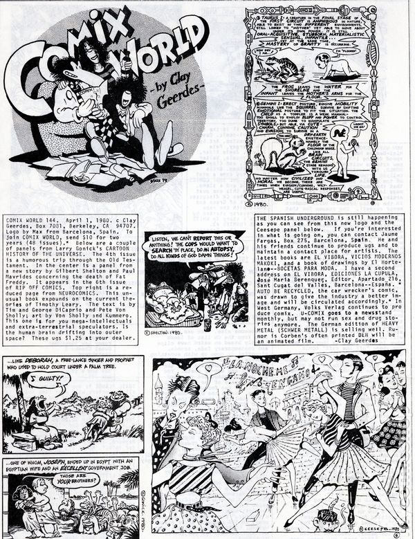 Newsletter by Clay Geerdes. Contains news of comix, artists of interest, and a general review of what was happening in the underground market. 8 1/2-in. x 11-in., 2 pages, B&W.