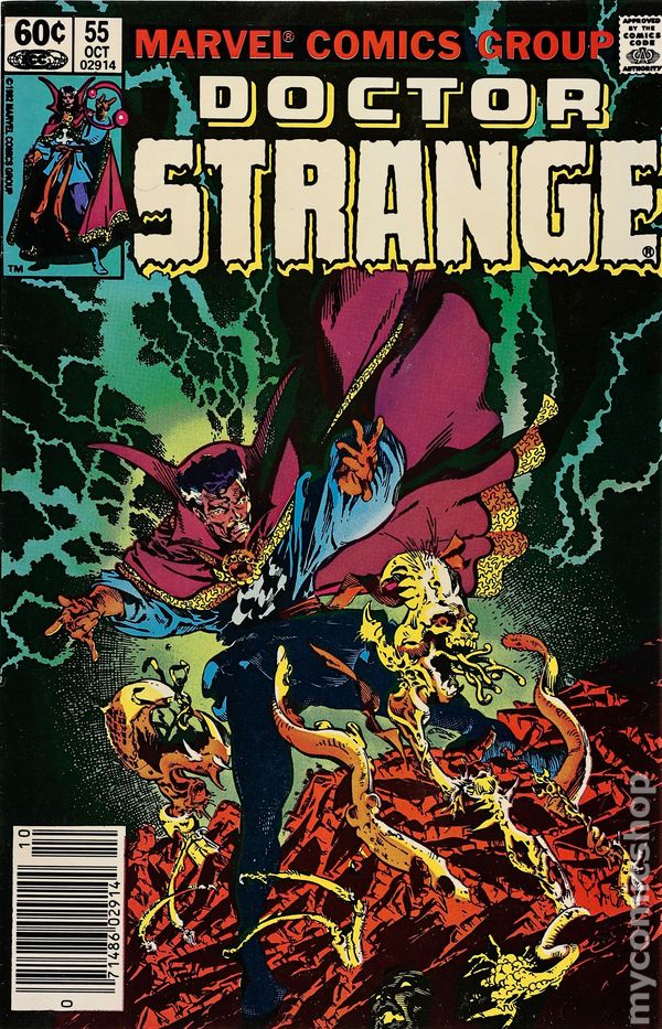 "Love is the Spell, the Spell is Death!" Part 1 of 2. Story by Peter Gillis. Art by Richard Case and Randy Emberlin. Cover by Kevin Nowlan. Brief appearances by Spider-Man, Hulk, Silver Surfer, the Avengers, Fantastic Four, X-Men, Nick Fury, Cloak and Dagger, and Daredevil. The Master of the Mystic Arts debuts in his new solo series. But will Doctor Strange's series end before it gets started? The dreaded Dormammu returns and chaos follows with him. Cover price $1.25.