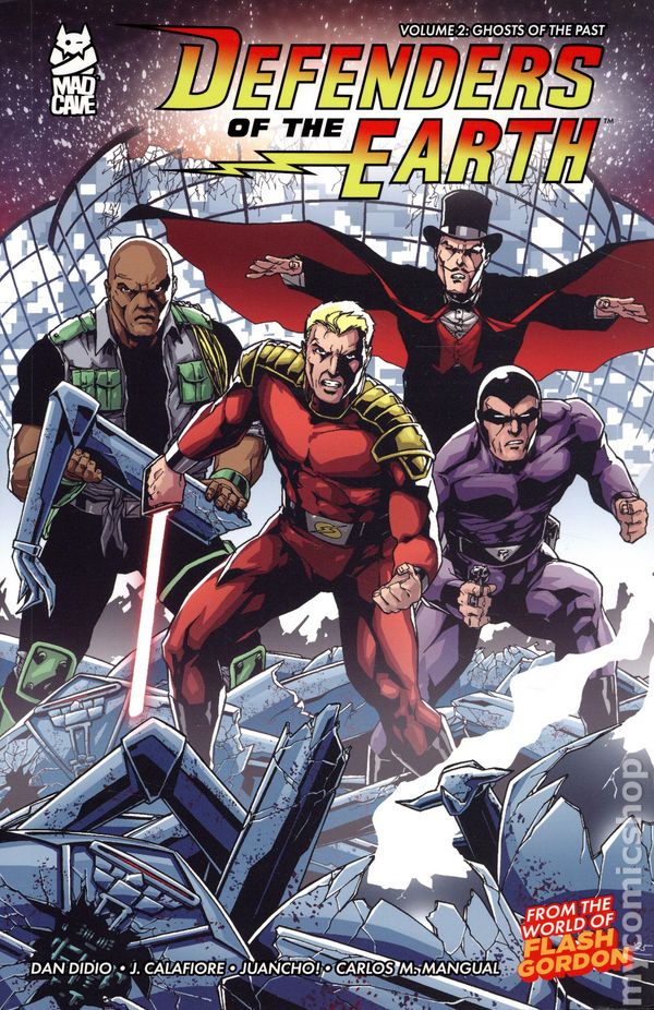 Volume 1 - 1st printing. "A World Divided!" Collects Defenders of the Earth (2024 Mad Cave) #1-4. Written by Dan DiDio. Art and Cover by Jim Calafiore. Flash Gordon, The Phantom, Mandrake the Magician and Lothar are united again in this reimagining of the classic animated series, Defenders of the Earth. Picking up with characters and storylines from the original series, Flash confronts Ming in final battle, only to find that even greater threats await him and his teammates as they each must confront ghosts of their past to protect their families and future. Softcover, 120 pages, full color. Teen Cover price $17.99.