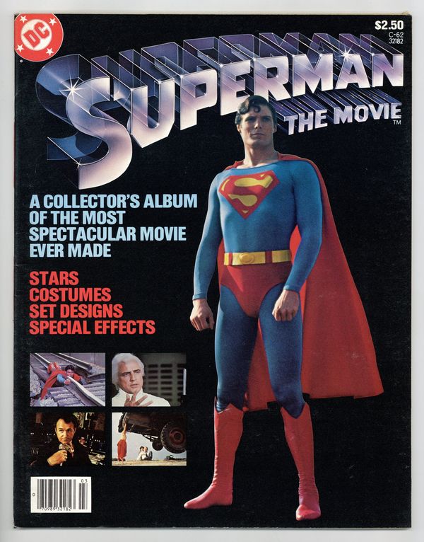 Starts Mar 9 All-New Collectors' Edition: Superman the Movie. Tells the story of Krypton, The Phantom Zone, Smallville, the Fortress of Solitude, the characters from the film, and more, using photos from the film, which came out in 1978 and starred Marlon Brando, Gene Hackman, Christopher Reeve, Margot Kidder, Glenn Ford, Phyllis Thaxter, Jackie Cooper, Trevor Howard, Marc McClure, Terrence Stamp, Valerie Perrine and Ned Beatty. Two-page Superman pinup. 64 pgs. Treasury-sized. Size is 10 x 13-1/2" (about the size of a Life magazine). Cover price $2.50. Cover price $2.00.