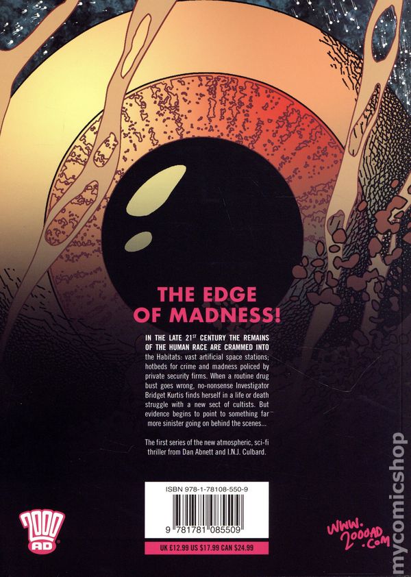 Humanity is on the brink in this atmospheric space-noir from hit comics duo Dan Abnett and INJ Culbard. Late 21st century and Earth has been reduced to an uninhabited wasteland. What was left of humanity was evacuated into overpopulated space stations, or "Habitats." A hotbed for crime and strange new religious sects, the Habitat Security Division has no shortage of work. No-nonsense Investigator Bridget Kurtis soon finds herself embroiled in a life or death struggle with a sinister cult and what she uncovers has disturbing implications for the future of the human race...