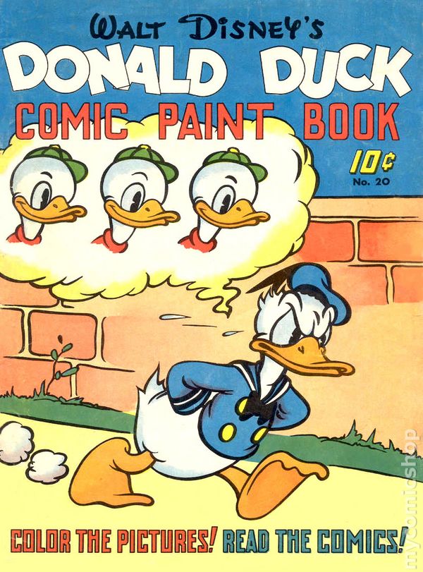 Stories and art by Bob Karp and Al Taliaferro. Considered part of Dell's Large Feature Comic series, this is actually more like a Donald Duck coloring book. While there are Donald Duck comic strips reprinted, the emphasis is on the large Donald Duck images to color on each page. 8 1/2-in. x 11 1/2-in, 52 pages, B&W. Cover price $0.10.