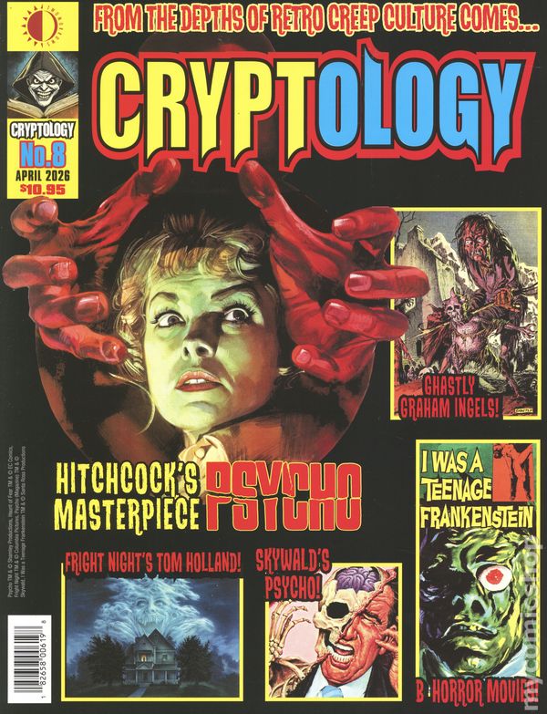 (W) Peter Normanton (A) Bela Lugosi, Boris Karloff (CA) Various "I bet you thought I’d forgotten you… but don’t worry, the Cryptologist never forgets his fiends! In this issue, we find out what Bela Lugosi, Boris Karloff, and their cohorts were up to when they weren’t appearing in our favorite horror movies—you’d be shocked! Plus, at long last, I’ve exhumed some of Ghastly Graham Ingels’ gruesome artwork for your delectation. Then we get to meet Norman Bates, courtesy of Alfred Hitchcock’s Psycho, Robert Bloch, and his lunatic mentor Ed Gein. Psycho II scriptwriter and Fright Night director Tom Holland will be dropping by for a chilling chat—you will definitely want to hear what he has to say! As if this isn’t enough, our Killer-B section takes you back to high school and a gathering of teenage monsters, and then we launch the first part of our extensive history of the pre-Code comic book, beginning in 1938. There’s all of this and more in my crypt crammed full of the macabre from editor Peter Normanton, made just for you retro horror fans!” Cover price $10.95.