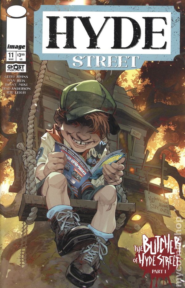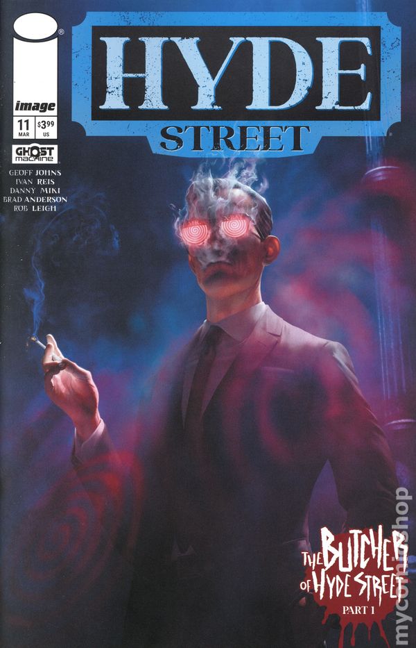 Written by Geoff Johns. Art by Ivan Reis & Various. Cover by Gary Frank, Brad Anderson. SERIES PREMIERE A new epic era in character-centered horror begins as GHOST MACHINE launches HYDE STREET, its newest ongoing series from creators GEOFF JOHNS and IVAN REIS (Blackest Night, Green Lantern, Aquaman)! In every city and town, off every country road and metropolis avenue, if you make a wrong turn…you might find yourself on Hyde Street. But be careful who you talk to and what you do because the consequences make death itself seem like the easy way out. Introducing MR. X-RAY! PRANKY, THE WORLD'S MOST DANGEROUS SCOUT! MISS GOODBODY! AND MANY MORE…out to delight, fright, and say good night. What is their secret and that of Hyde Street? Only they know. For now. 32 pages, full color. Rated T+ Cover price $3.99.