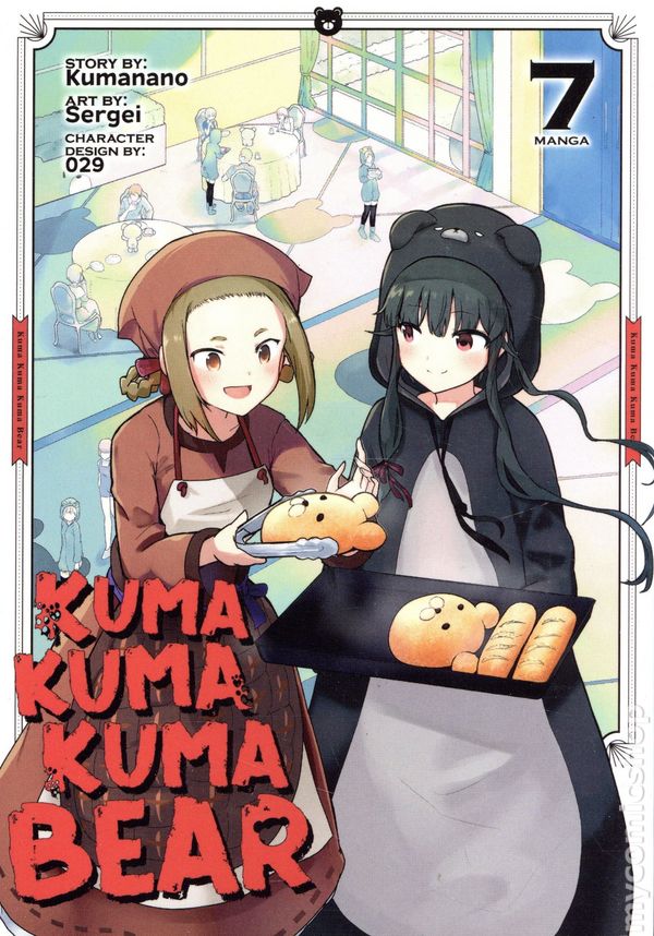 Volume 7 - 1st Printing. Written by Kumanano. Art and Cover by Sergei. Character design by 029. OPEN FOR BUSINESS! Working with the bakers from the capital and the orphans, Yuna opens a bear-themed bakery in Crimonia! Later, when she sets out to cross a snowy mountain range in search of some new foods, she comes across someone lost in a blizzard! Between running a business and starting a new adventure, the Bloody Bear is busy like never before! Softcover, 5-in. x 7 1/2-in., 180 pages, B&W. Cover price $12.99.