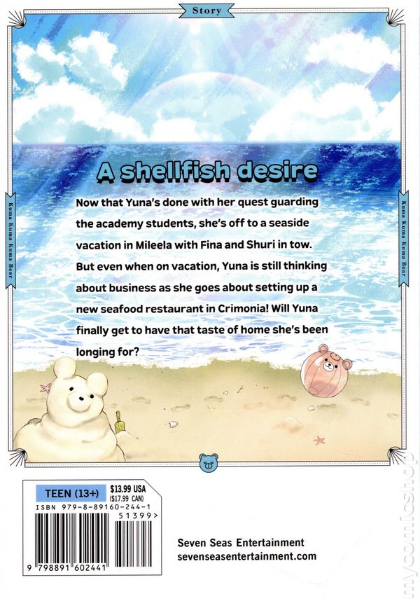 Volume 10 - 1st Printing. Written by Kumanano. Art and Cover by Sergei. Character design by 029. A SHELLFISH DESIRE! Now that Yunas done with her quest guarding the academy students, shes off to a seaside vacation in Mileela with Fina and Shuri in tow. But even when on vacation, Yuna is still thinking about business as she goes about setting up a new seafood restaurant! Will Yuna finally get to have that taste of home shes been longing for?! Softcover, 5-in. x 7 1/2-in., 180 pages, B&W. Cover price $12.99.