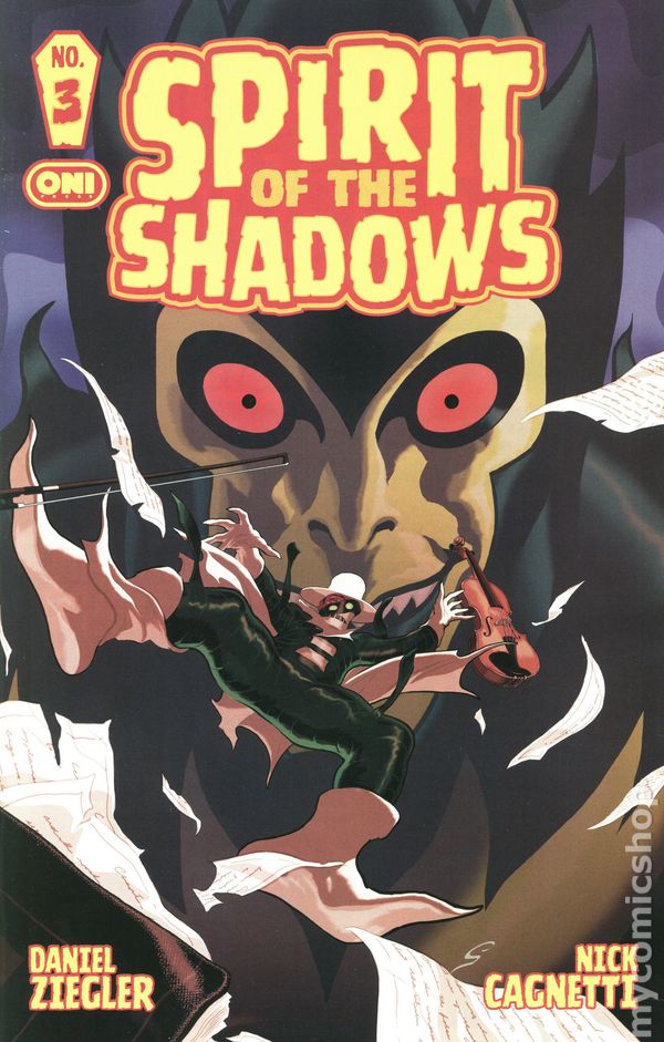 3rd Printing. (W) Nick Cagnetti, Daniel Ziegler (A) Nick Cagnetti (CA) Nick Cagnetti EMBRACE YOUR FEAR . . . THE SPIRIT OF THE SHADOWS DRAWS NEAR! From the darkest recesses within acclaimed cartoonist Nick Cagnetti (Pink Lemonade, XINO) and co-creator Daniel Ziegler (Elodie) comes the most visually stunning, outrageously otherworldly, and hauntingly heartfelt superhero-horror hit of 2026! Once, Erik Leroux was a mortal musician, selflessly devoted to his music and his true love, Katrina . . . until his sudden death plunged his soul into the carnival-like torments of the Spirit World beyond our own. Now, reborn as a phantom with fleeting memories of his life among the living, and forever cursed to bear the arcane costume his corpse wore to the grave, Erik will claw his way back from the infernal planes to uncover the mysteries of his own life . . . and avenge the dark sins that transformed him into the SPIRIT OF THE SHADOWS! 32 pages, full color, not rated. Cover price $4.99.