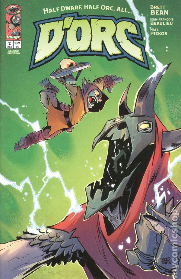 2nd Printing Surprise Variant. (W) Brett Bean (A) Brett Bean, Jean Francois Beaulieu (CA) Brett Bean Armed with nothing but a magical yet ambitiously violent shield, a lonely orphan stumbles headfirst into Sunderaines never-ending war between the Light and Dark. Elves vs. Orcs. Wizards vs. Common Sense. Dragons vs. Literally Everyone. And caught dead-center? D'ORC. With a wholly inconvenient doomsday prophecy, the half dwarf, half orc—all D'ORC—is fated to end the world. Soon, every human, elf, goblin, dwarf, Snargletooth, Necroid, Ice Giant, Trauma Llama, and at least three other unpronounceable magical creatures, will know his name and want him dead. There will also be a chicken. Join fan-favorite artist BRETT BEAN (I HATE FAIRYLAND, DUNGEON CRAWLER CARL THE CROCODILE), colorist JEAN-FRANÇOIS BEAULIEU (I HATE FAIRYLAND), and letterer NATE PIEKOS (MINOR THREATS) for a hilarious high-fantasy romp perfect for fans of CONAN, LORD OF THE RINGS, and of course, GERT's deadpan humor. 24 pages, full color, rated T+. Cover price $3.99.