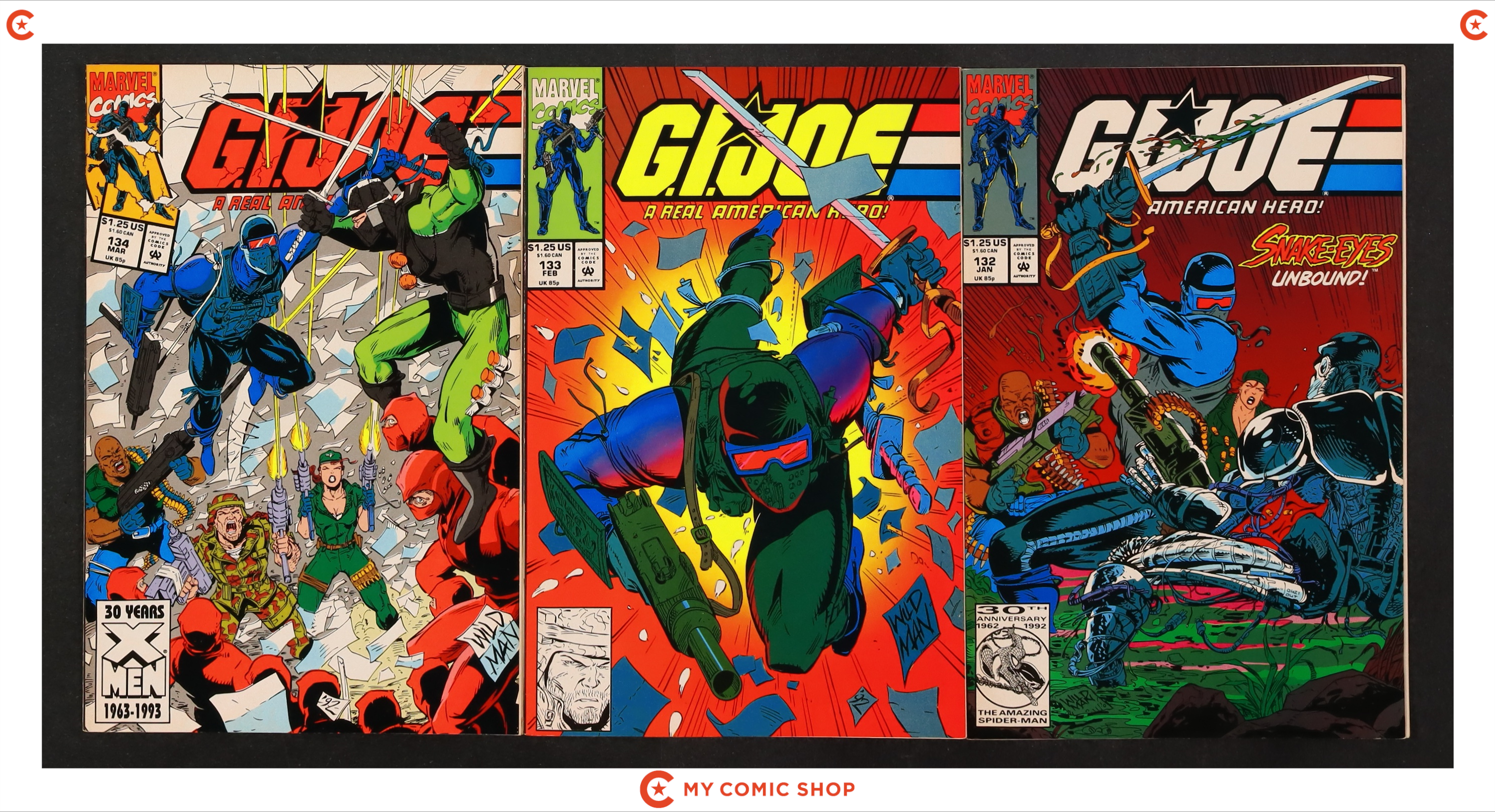 Ends Mar 30 8:22 PM CST Bid History 6 bids Current Bid $53 Your Secret Max Bid If you'd like to bid, please log in or register. Direct Edition. Hard to find last issue of this series. Story by Larry Hama. Art by Phil Gosier and Scott Koblish. Ever wondered how the entire G.I. Joe saga ended? G.I. Joe fans LOVE this cover featuring all our favorite Joes folding up the American flag one last time at the PIT Headquarters. The story features a letter from Snake Eyes, (the first time we ever get to hear the silent soldier's thoughts!), detailing his surprising feelings on war and the military. Not only is this a highly collectible final issue, its' a great read too. Cover price $1.50.