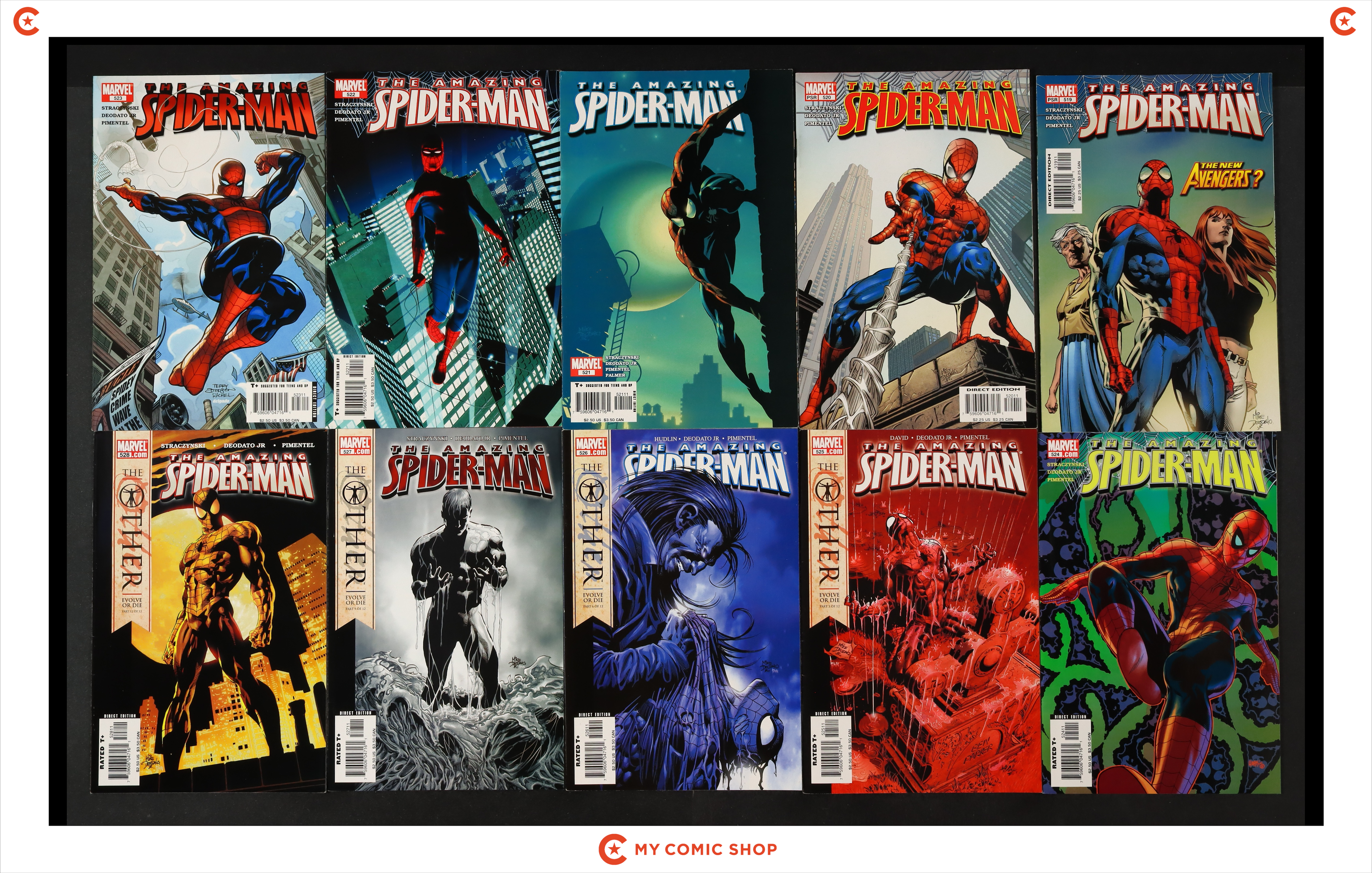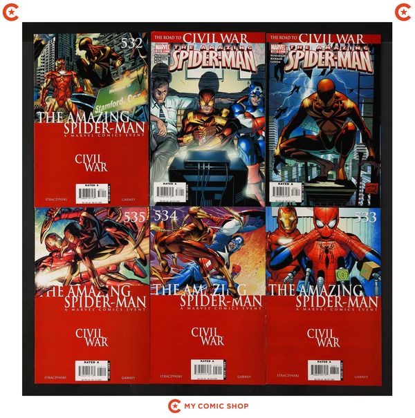Issues 519-524, 525A-528A, 530, 531, 532A, 533A, 534-536, 537A, and 538A of Amazing Spider-Man (1998 2nd Series). Most will grade in the VF to FN range.