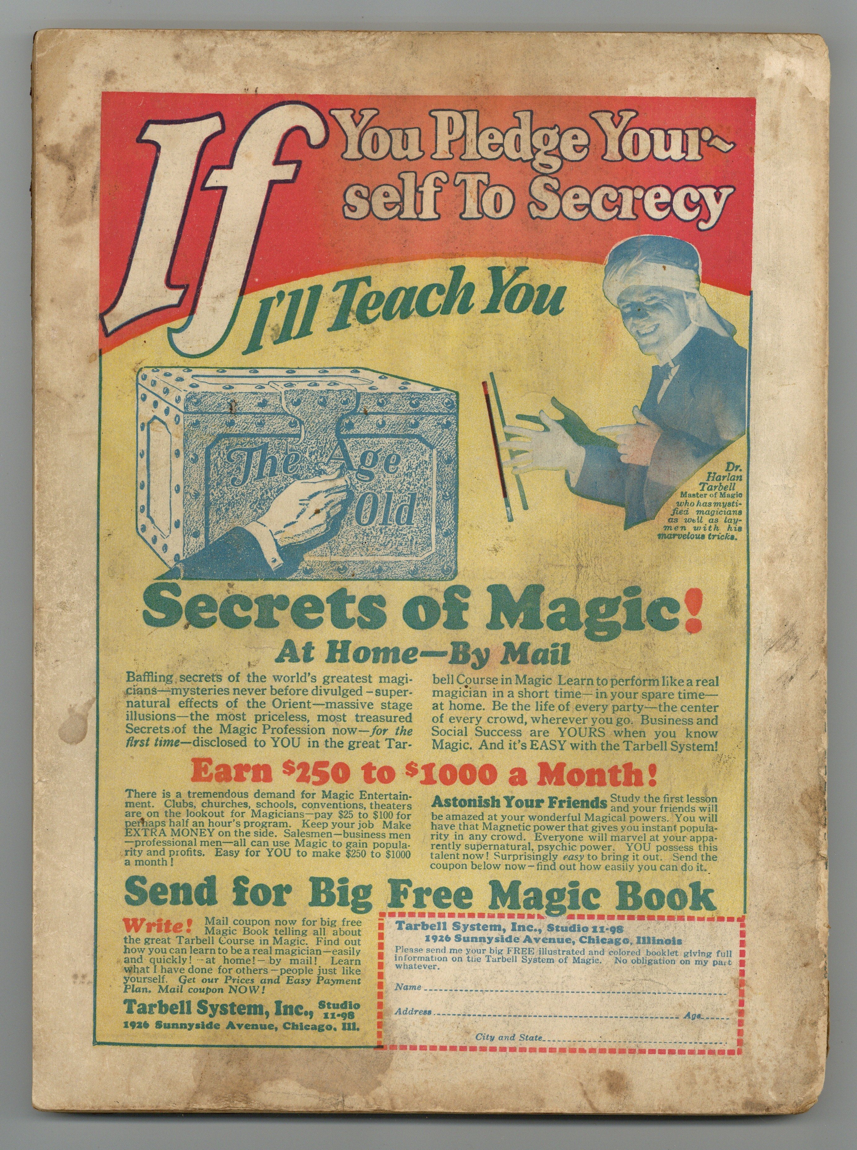 Cover oxidation. 2" Front cover tear.
