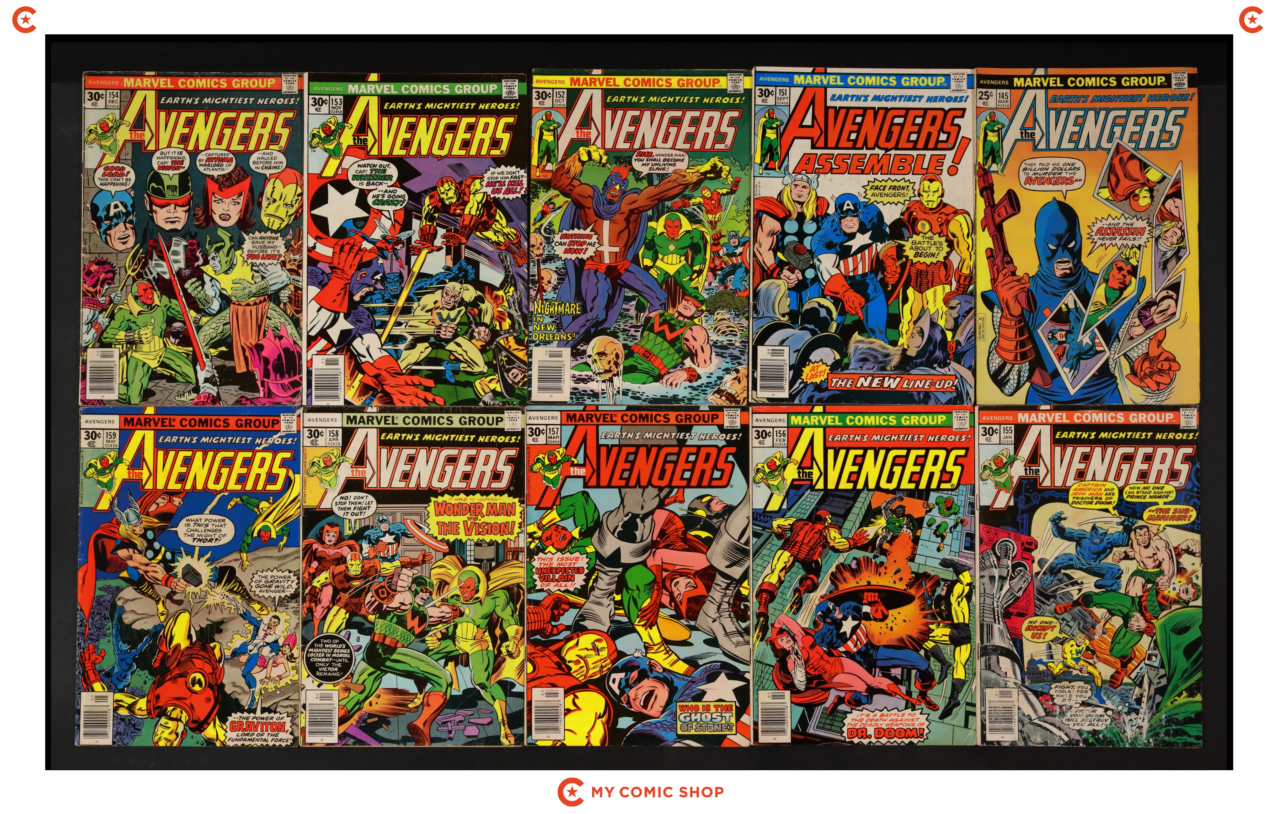 Issues 151, 154, 155, 160-166 of Avengers (1963 1st Series). Most will grade in the GD to VG range with #162 grading FN.