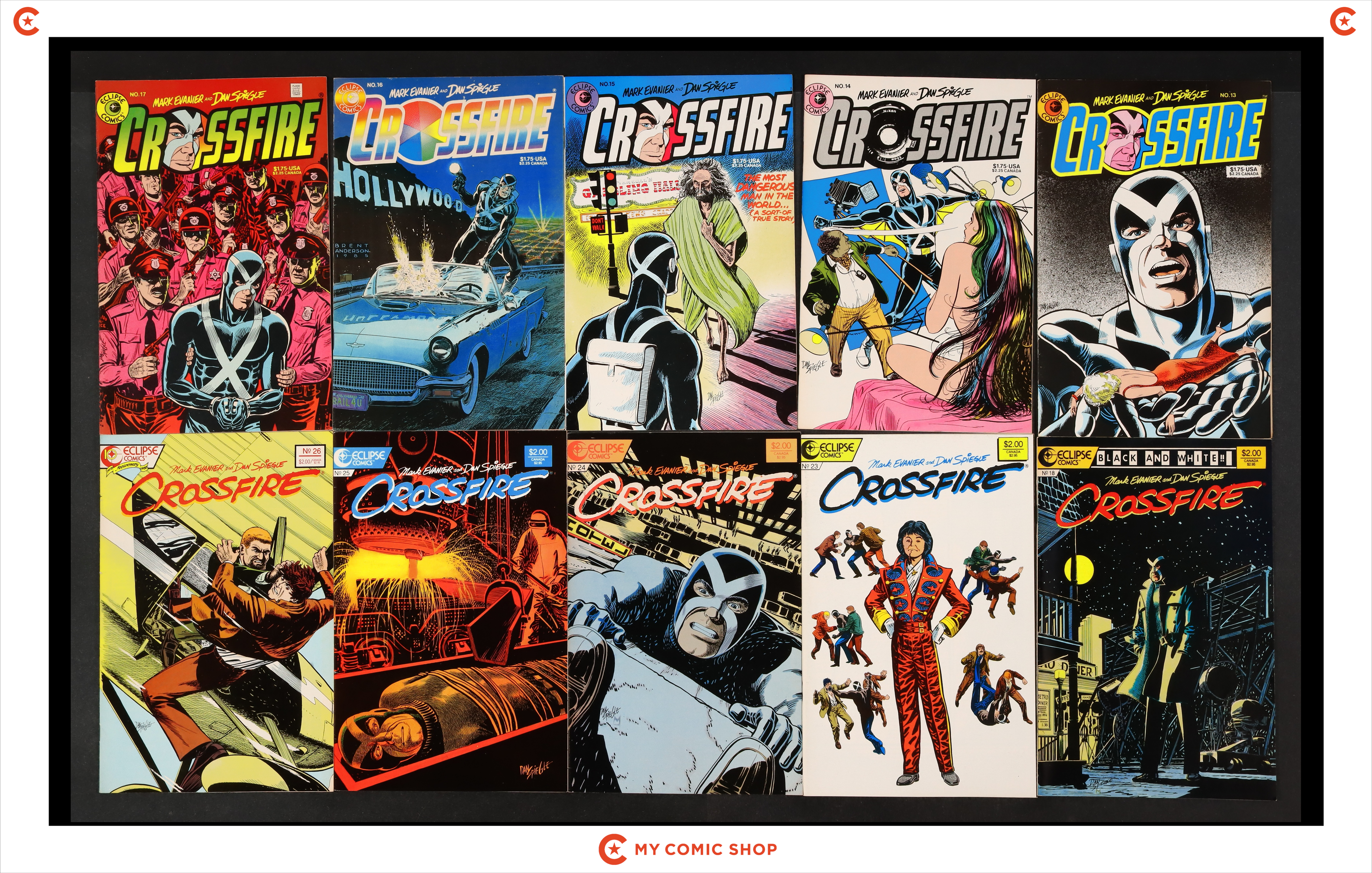 Issues 13-18 and 23-26 of Crossfire (1984 Eclipse). Most will grade in the FN range with a few grading VF.
