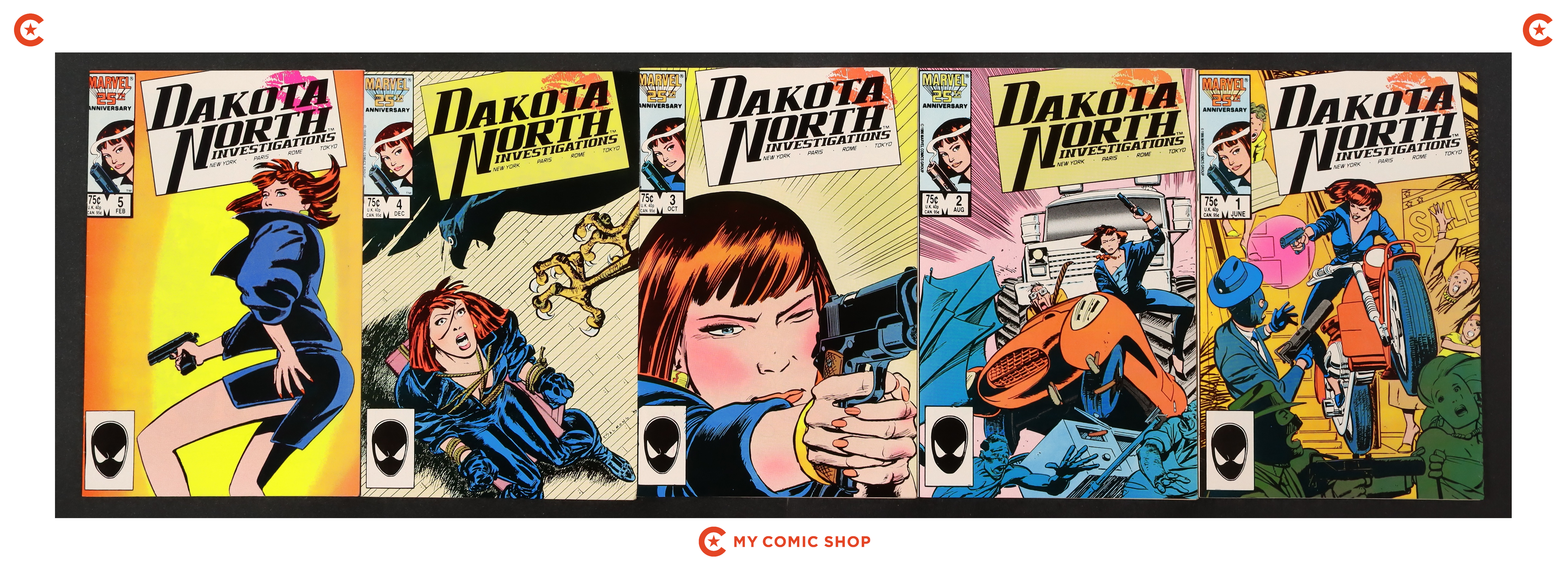 Issues 1-5 of Dakota North (1986 Marvel). Most will grade in the FN/VF to FN range.