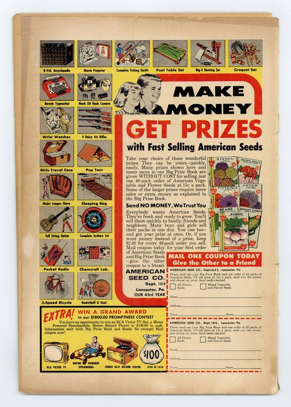 Ends Mar 30 7:09 PM CST Bid History 2 bids Current Bid $4 Your Secret Max Bid If you'd like to bid, please log in or register. Cover art by Owen Fitzgerald. House ad for House of Mystery. Untitled Bob Hope story, script by Cal Howard, art by Owen Fitzgerald; Bob recalls dropping a nickel in the ocean and convinces Mrs. Peabody to help him look for it in case it was valuable. Honey in Hollywood one-pager by Henry Boltinoff; Honey practices her diction. House ad promoting DC's Editorial Advisory Board. House ad for The Adventures of Dean Martin and Jerry Lewis. People are People! public service announcement starring Superman, script by Jack Schiff, art by Win Mortimer. Untitled Bob Hope story, script by Cal Howard, art by Owen Fitzgerald; Bob goes deep sea diving for a nickel and discovers Atlantis. Brain teasers by Martin Naydel. Untitled Bob Hope story, script by Cal Howard, art by Owen Fitzgerald; The mermaids give Bob a chest full of rare nickels that ruin the market for rare coins. Untitled Kitty Karr of Hollywood story; Kitty tries to Hal sell a song. 44 pgs. Cover price $0.10.