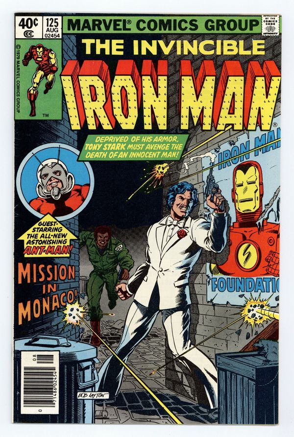 Starts Apr 20 Newsstand Edition. "The Monaco Prelude" Part 3 of 5. Guest-starring Captain America and Ant-Man (aka Scott Lang). Plot by David Michelinie and Bob Layton. Script by David Michelinie. Art by John Romita Jr. (breakdowns) and Bob Layton (finishes). Cover by Bob Layton. In a shocking development, Iron Man killed the Carnelian ambassador with an inadvertent repulsor ray blast last issue. And now Tony Stark must hand over his armor to the police and figure out what to do next! With assistance from Ant-Man and the Sentinel of Liberty, Tony learns that a mysterious man in Monaco is responsible for the deadly malfunction of his armor! So the golden avenger (sans armor) and Rhodey fly to Monte Carlo to clear Iron Man's name! This won't be Tony's typical vacation on the French Riviera! Cameo appearances by the Beast, Falcon, Ms. Marvel, Vision, Wasp, Whiplash, Ed Koch, Bethany Cabe, and Justin Hammer. 32 pages. Cover price $0.40.