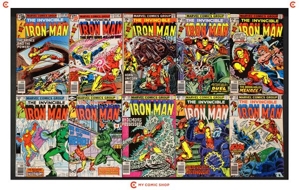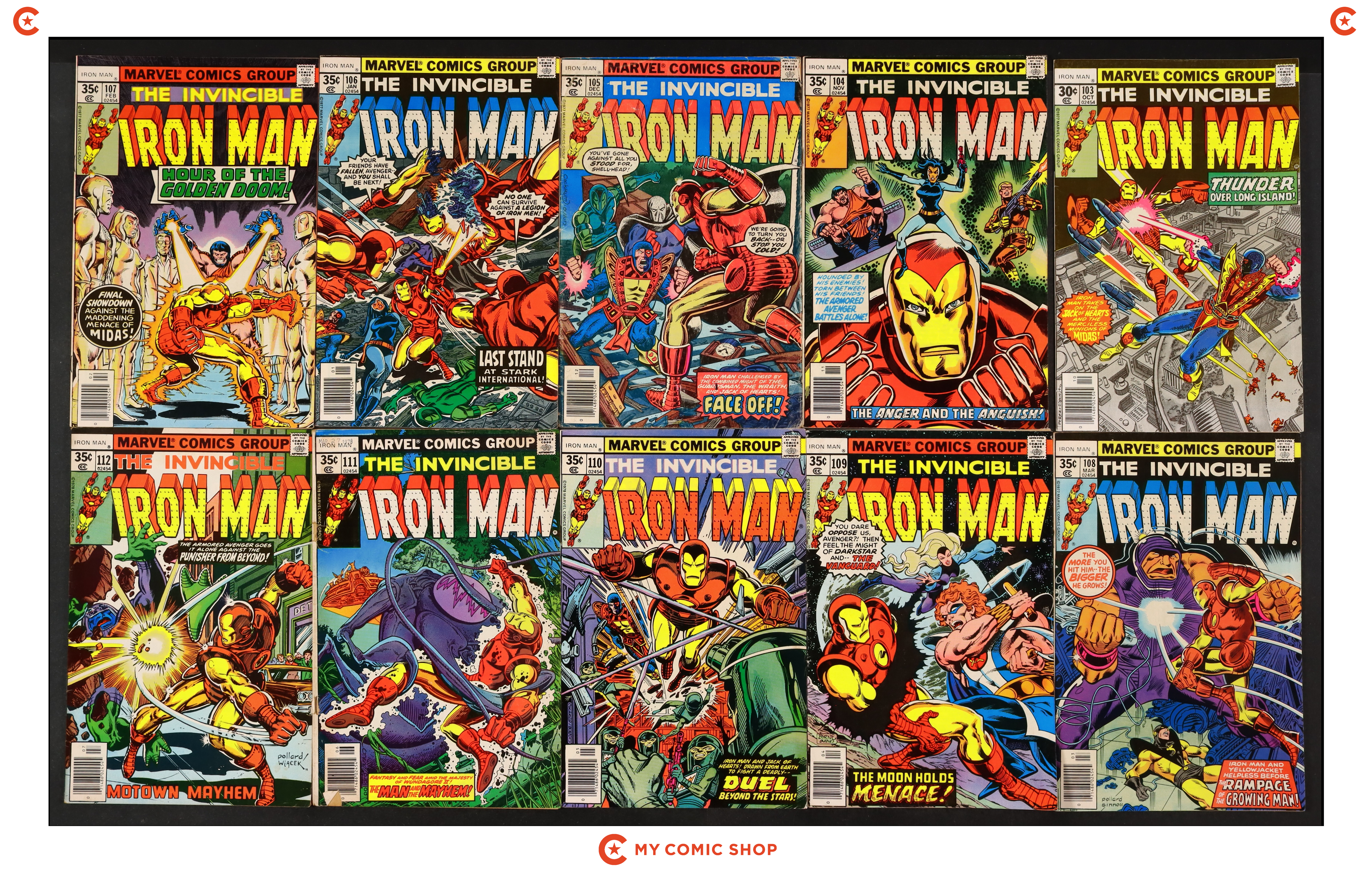 Issues 103-112 of Iron Man (1968 1st Series). Most will grade in the FN range with a couple grading VG and #105 grading GD.