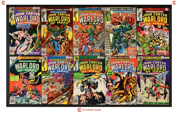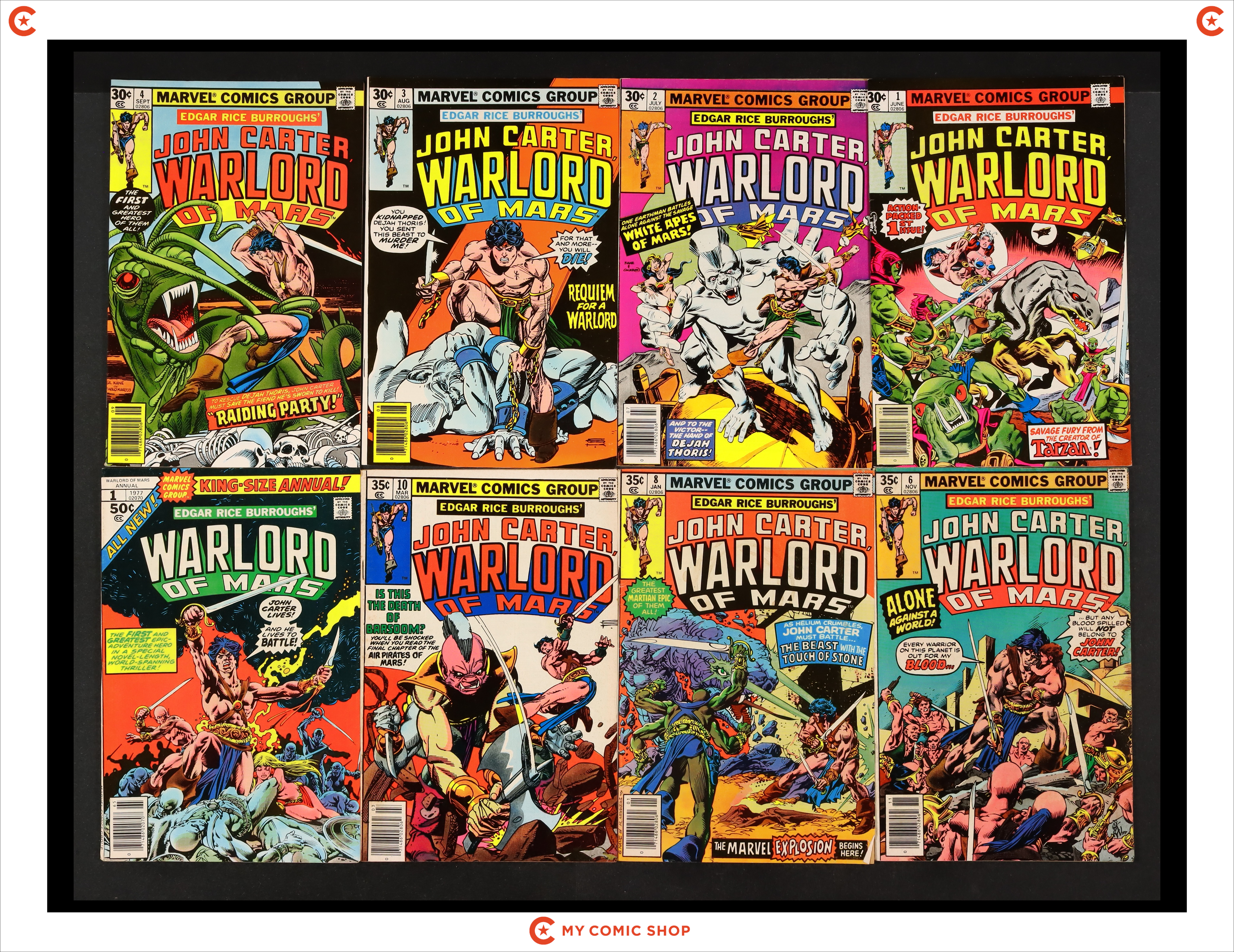 Issues 1-4, 6, 8, and 10 of John Carter Warlord of Mars (1977 Marvel); and 1 of John Carter Warlord of Mars (1977 Marvel) Annual. Most will grade in the FN/VF to FN range with a couple grading VG.