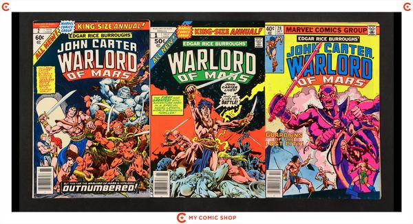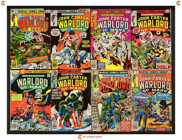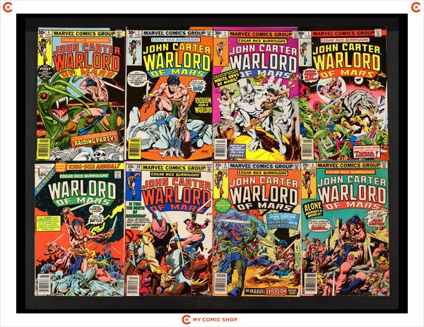 Issues 1-4, 8, 13, and 18 of John Carter Warlord of Mars (1977 Marvel); and 1 of John Carter Warlord of Mars (1977 Marvel) Annual. Most will grade in the FN to VG range with a couple grading GD.