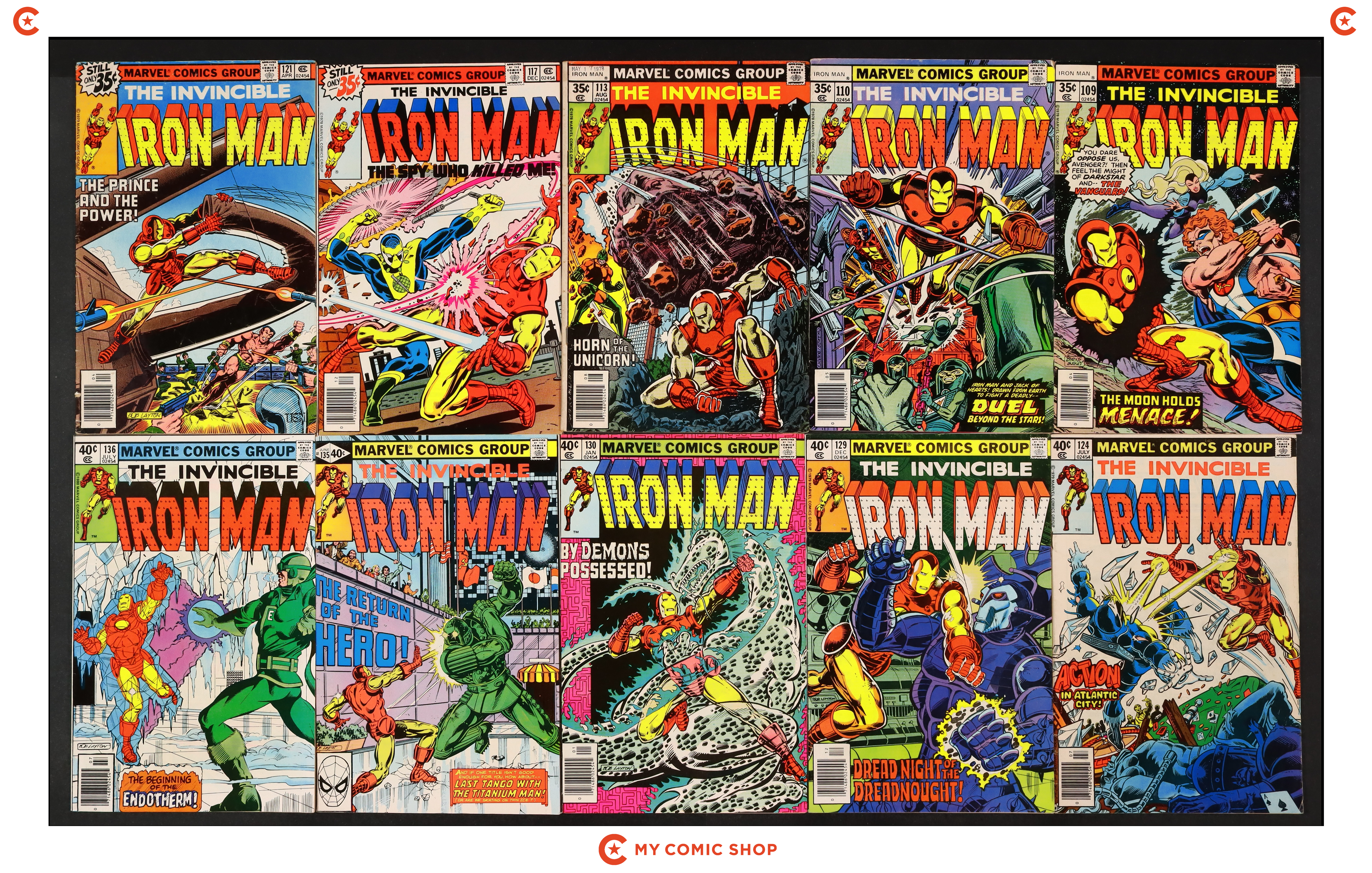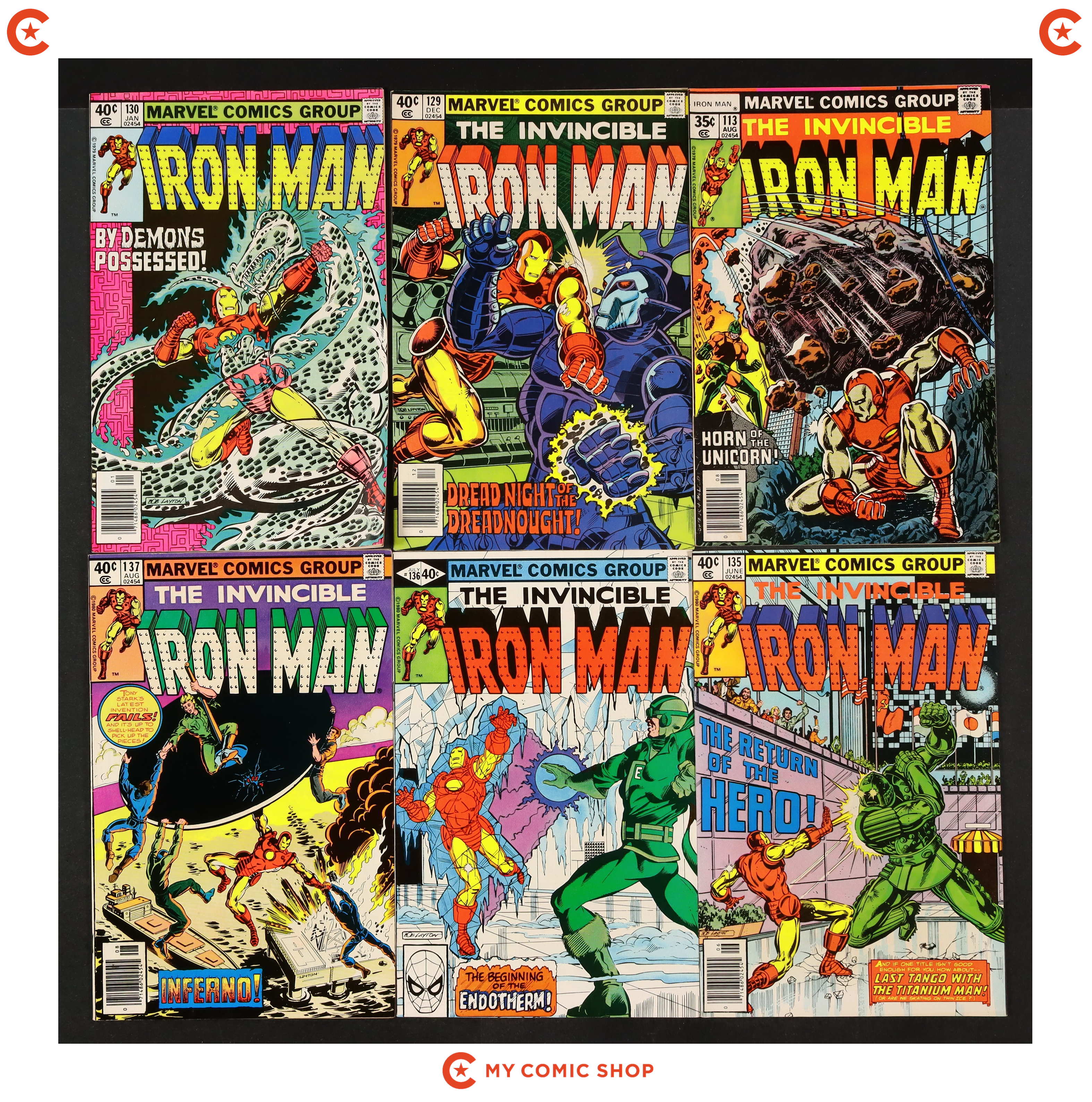 Issues 117 of Iron Man (1968 1st Series) Whitman Variants; 119, 121, 124N, 133, 134N-136N, and 137 of Iron Man (1968 1st Series); and 4 of Iron Man (1968 1st Series) Annual. Most will grade in the FN range with a couple grading VG.