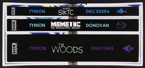 Starts Apr 4 James Tynion IV Slipcased Hardcover Set includes The Woods 10th Anniversary, Memetic: The Apocalyptic Trilogy 10th Anniversary, and The Art of Something is Killing the Children 5th Anniversary, all Slipcased Hardcovers combined in one giant slipcase.