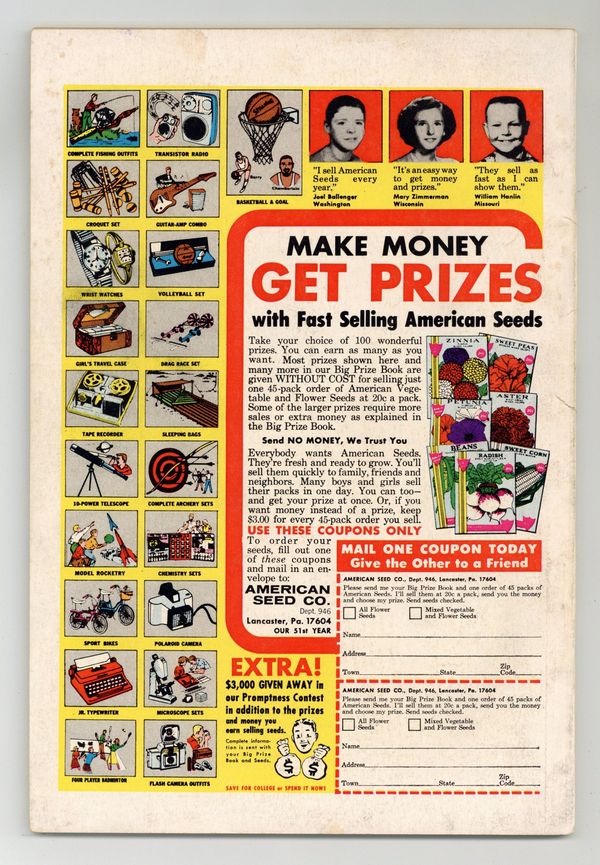 Ends Mar 30 8:54 PM CST Bid History 4 bids Current Bid $15 Your Secret Max Bid If you'd like to bid, please log in or register. Cover by Jack Kirby, George Roussos and Vince Colletta. Stories by Stan Lee. Art by Tom Palmer, Jack Kirby & Paul Reinman and Joe Orlando & Vince Colletta. It's the wondrously weird world of the Watcher in "Melvin and the Martian," reworked from a story in Amazing Adult Fantasy (1961) #12. Plus: Magneto and his new Brotherhood of Evil Mutants steal a freighter and use it to take over the South American nation of Santo Marco; the X-Men invade and take the country back; and Xavier is caught in an explosion and loses his mental powers in "The Brotherhood of Evil Mutants!", reprinted from Uncanny X-Men (1963) 1st Series #4. Also: A wealthy and ruthless financier is exposed as a criminal and begins his reign as the Owl; the Owl hires Matt Murdock to get him out of his legal troubles; the Owl gathers a gang, traps Daredevil and Karen and begins his bid to rule the underworld; and DD escapes and takes the Owl down in "The Owl, Ominous Overlord of Crime," reprinted from Daredevil (1964 1st Series) #3. Softcover, 64 pages, full color. Cover price $0.25.