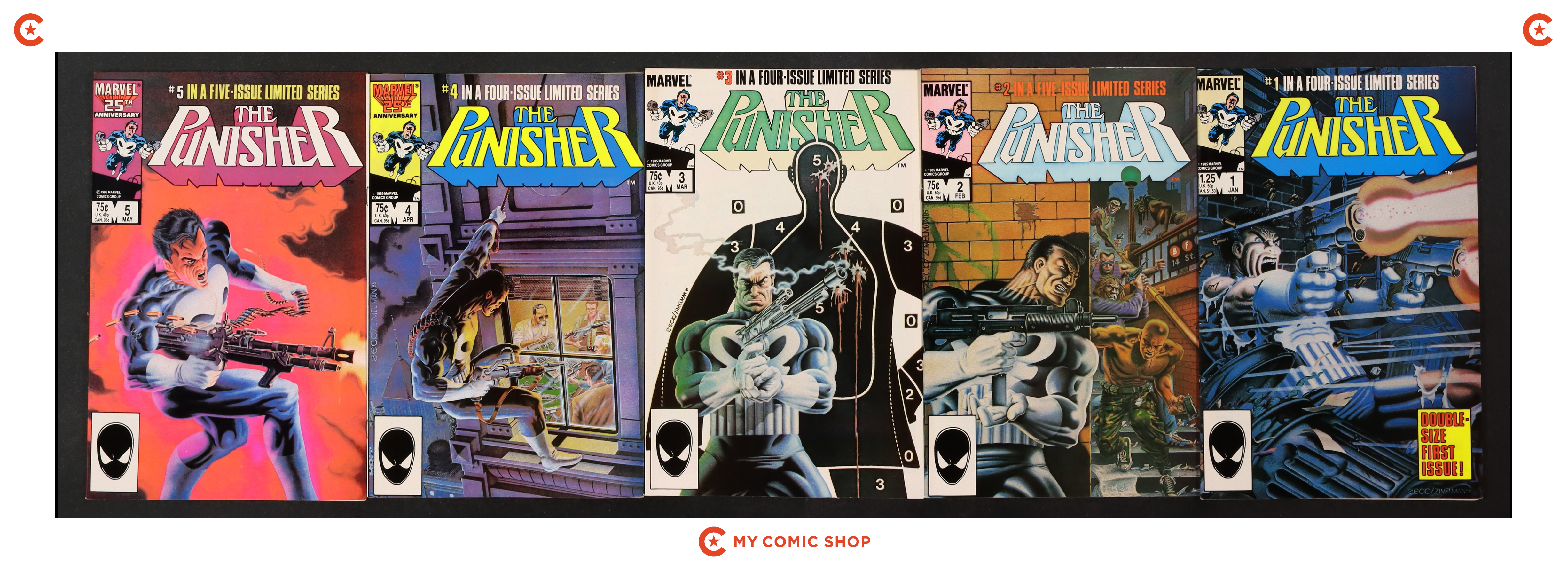 Issues 1D-5D of Punisher (1986 1st Series). Most will grade in the VF- range.