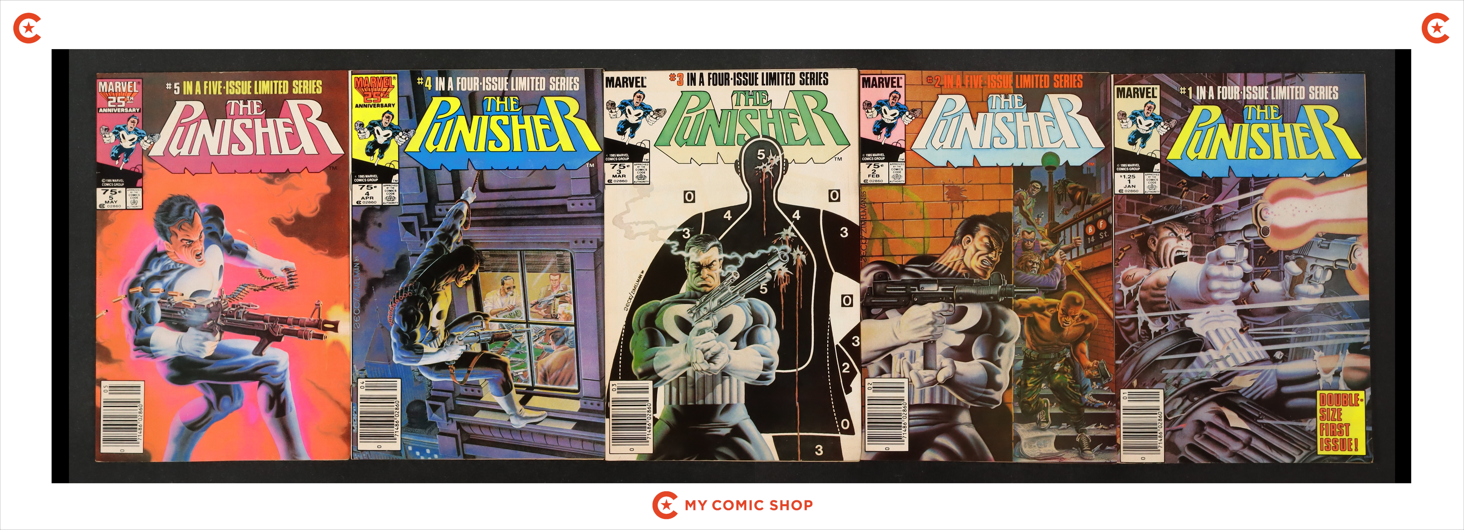 Issues 1N, 2N, 3N, 4N, and 5N of Punisher (1986 1st Series). Most will grade in the FN range.