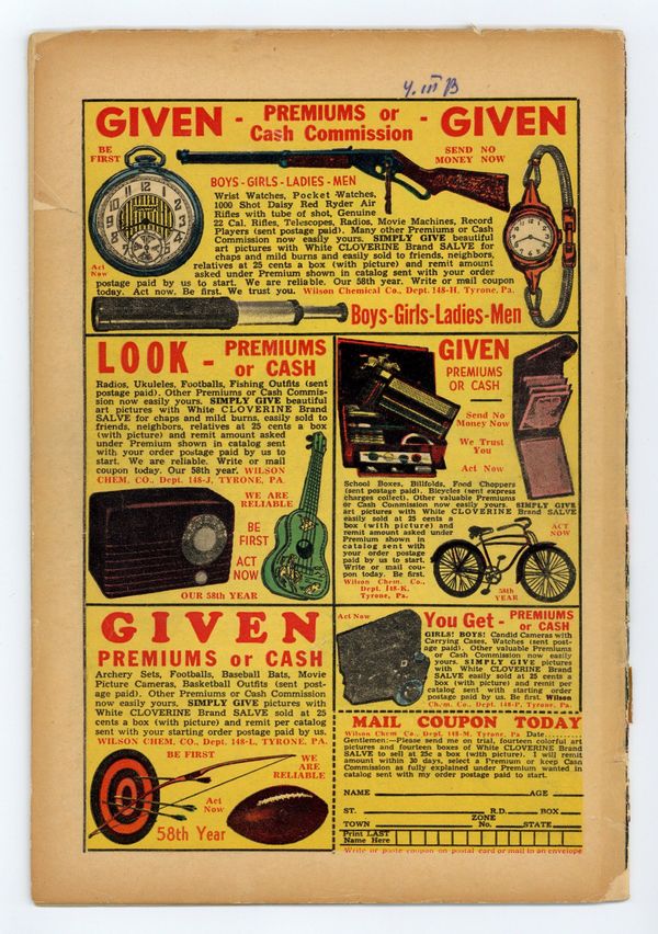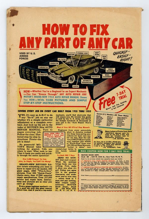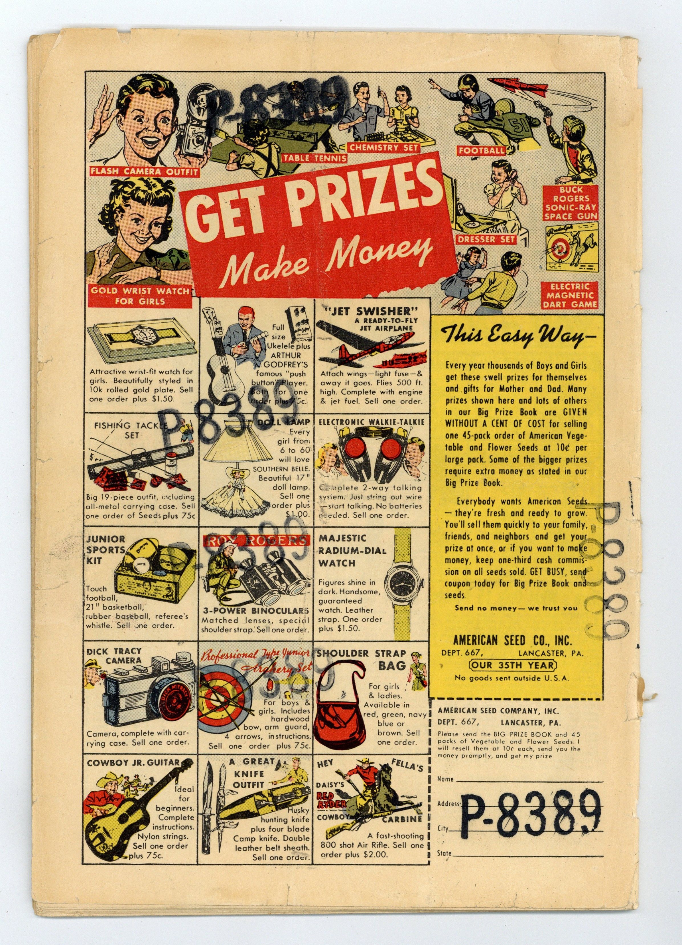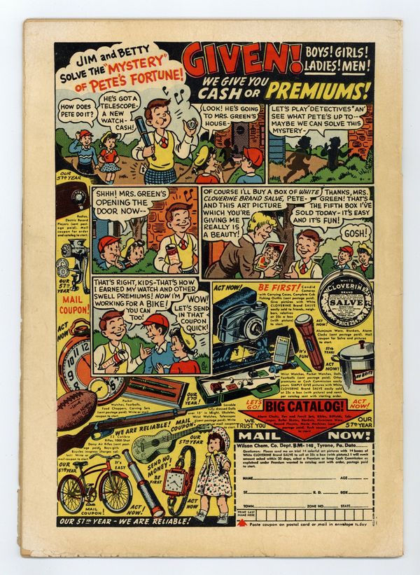 Starts Apr 4 Cover art by Harry Anderson. Man Or Beast, art by Paul Reinman. The Ticket text story. The Dreadful Disguise, art by Al Eadeh. Harley's Friend, art by Bob McCarty. The Wrong Man, art by Jim McLaughlin. The Horrible Years, art by Joe Maneely. 36 pgs. $0.10. Cover price $0.10.