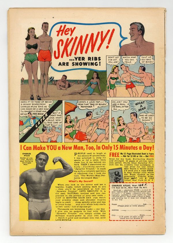 Ends Dec 22 8:43 PM CST Bid History 3 bids Current Bid $26 Your Secret Max Bid If you'd like to bid, please log in or register. Humor magazine with this issues' contents printed upside down. The cover says "Turn insides downside-up, the cover turns upside-down. What fun, gang! People see you reading with the cover upside-down and think you're crazy!" Ad for Panic magazine. "Bringing Back Father!", art by Bill Elder and Bernie Krigstein; Jiggie cannot take Maggs's abuse any longer so when he has his serious moments he hires some goons to beat her into submission. "What's My Shine!", art by Jack Davis; How the Senate Subcomittee hearings would go if they were run like a TV game show; Loosely based on "What's My Line?" Ad for Piracy magazine. "Meet Miss Potgold," art by Basil Wolverton; A collection of drawings of grotesque women entered in the Miss Potgold of 1955 contest. "Julius Caesar!", art by Wally Wood; MAD writer points out standard lampoon shtick elements during a portion of Julius Caesar story. 36 pgs., full color. $0.10. Cover price $0.10.