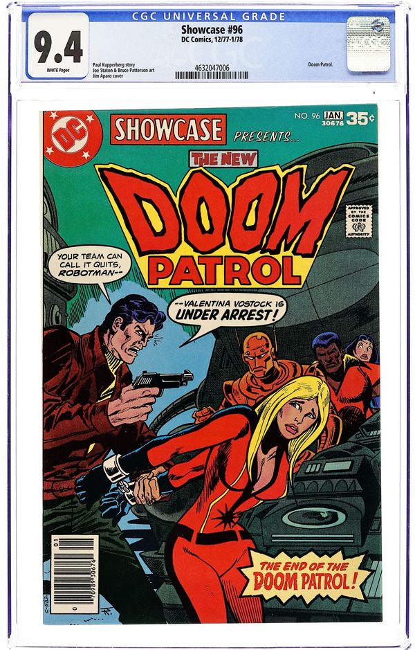 Starts Jan 19 Cover by Jim Aparo. "Defection!", script by Paul Kupperberg, pencils by Joe Staton, inks by Bruce Patterson; The Doom Patrol returns home after their defeat of General Immortus to find a U.S. agent waiting for them in their headquarters; Lt. Matt Cable has been assigned by U.S. Intelligence to apprehend and arrest Russian ex-cosmonaut Lt. Col. Valentina Vostok, aka the new Negative Woman; The Doom Patrol defends their new teammate, and trap Lt. Cable in a locker; Robotman grills Negative Woman on her past, and she leaves; Her exit, though, is interrupted by the Cossack, a Russian agent assigned to bring her in. 36 Pages, Full Color. Cover price $0.35.