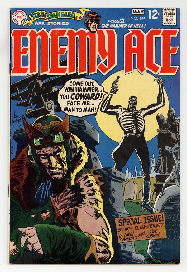 Starts Jan 19 Cover art by Joe Kubert. Death Takes No Holiday! Starring Enemy Ace, script by Robert Kanigher, pencils by Neal Adams, inks by Joe Kubert; Enemy Ace faces pilots attired like skeletons. Ad for DC Special #3 and The Flash #187, pencils by Neal Adams and Ross Andru, inks by Nick Cardy and Mike Esposito. Air Force Heroes and The Mechanic humor half-page pages by John Costanza. Ad for The Brave and the Bold #83, art by Irv Novick. 36 Pages, Full Color. Cover price $0.12.