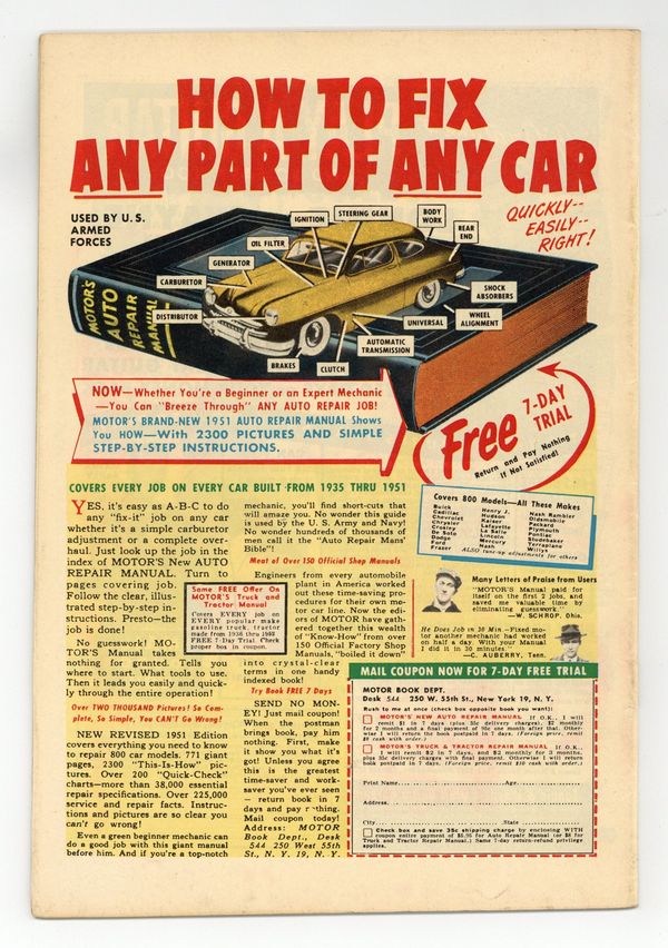 Starts Jan 19 Art by Joe Kubert and others. Cover by Gene Fawcette. Reprints Jesse James (1950 Avon) #1. True tales (some slightly embellished) of Old West outlaws, focusing on the James brothers and other real-life figures from history. The story of Jesse James is given a war-hero spin, as he fights for the Confederacy against the Union commander Redbeard Randolph, who humiliated his family. Joining the guerrilla band of Bloody Bill Anderson, he takes part in the Centralia Massacre before becoming a bandit and outlaw. Split-Second Stand In introduces Alabam, who becomes sheriff of Broken Creek after his family is murdered, with art by Joe Kubert. Bloody Bill Anderson; The Centralia Massacre; Split-Second Stand In!; The San Antonio Stage Robbery; The Great Plains Robbery! 32 pages, Full Color. Cover price $0.10.