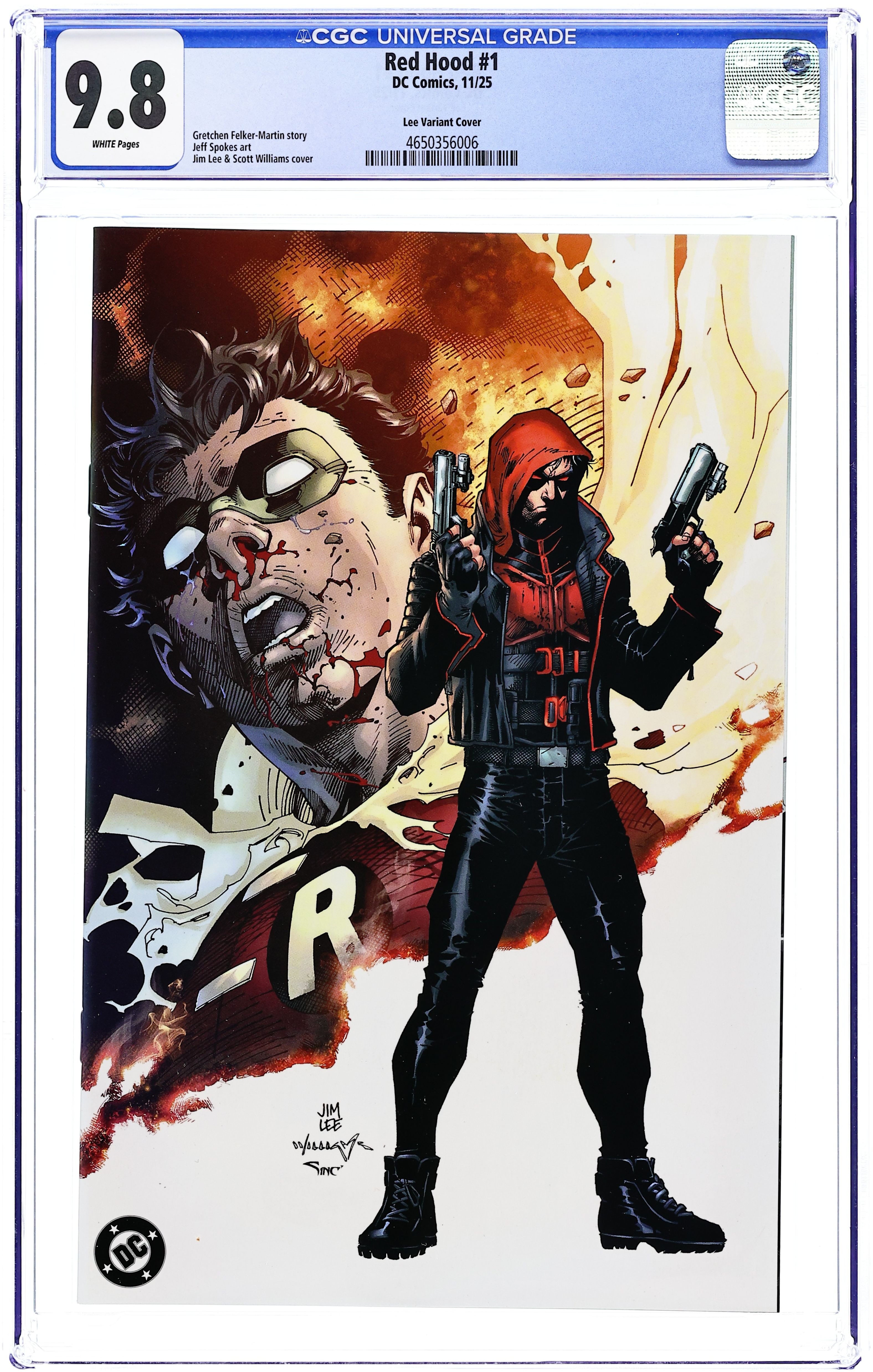 Starts Jan 3 Limited 1 for 50 Retailer Incentive Variant Cover. Written by Gretchen Felker-Martin. Art by Jeff Spokes. Cover by Jim Lee. ERUPTING FROM THE EVENTS OF H2SH COMES DC'S FIRST-EVER IN-CONTINUITY, MATURE READERS, ONGOING RED HOOD SERIES! Jason Todd has left Gotham and Batman behind him. All he's taking with him is his costume, his bike, and a metal briefcase containing two handguns (and lots of bullets). New Angelique seems like the perfect place for Red Hood to put down roots. There's crime, vice, and corruption everywhere. When Jason discovers a superpowered serial killer who is targeting the city's police, he finds himself sucked into a terrible and bleak conspiracy with seemingly no end in sight. But Jason isn't the only person on the scene. Following his trail is Helena Bertinelli a.k.a. Huntress. Is she here to stop him or help him? What will happen when the two black sheep of the Bat-Family start working together? Get ready for Red Hood like you've always wanted to see him. Cover price $5.99.