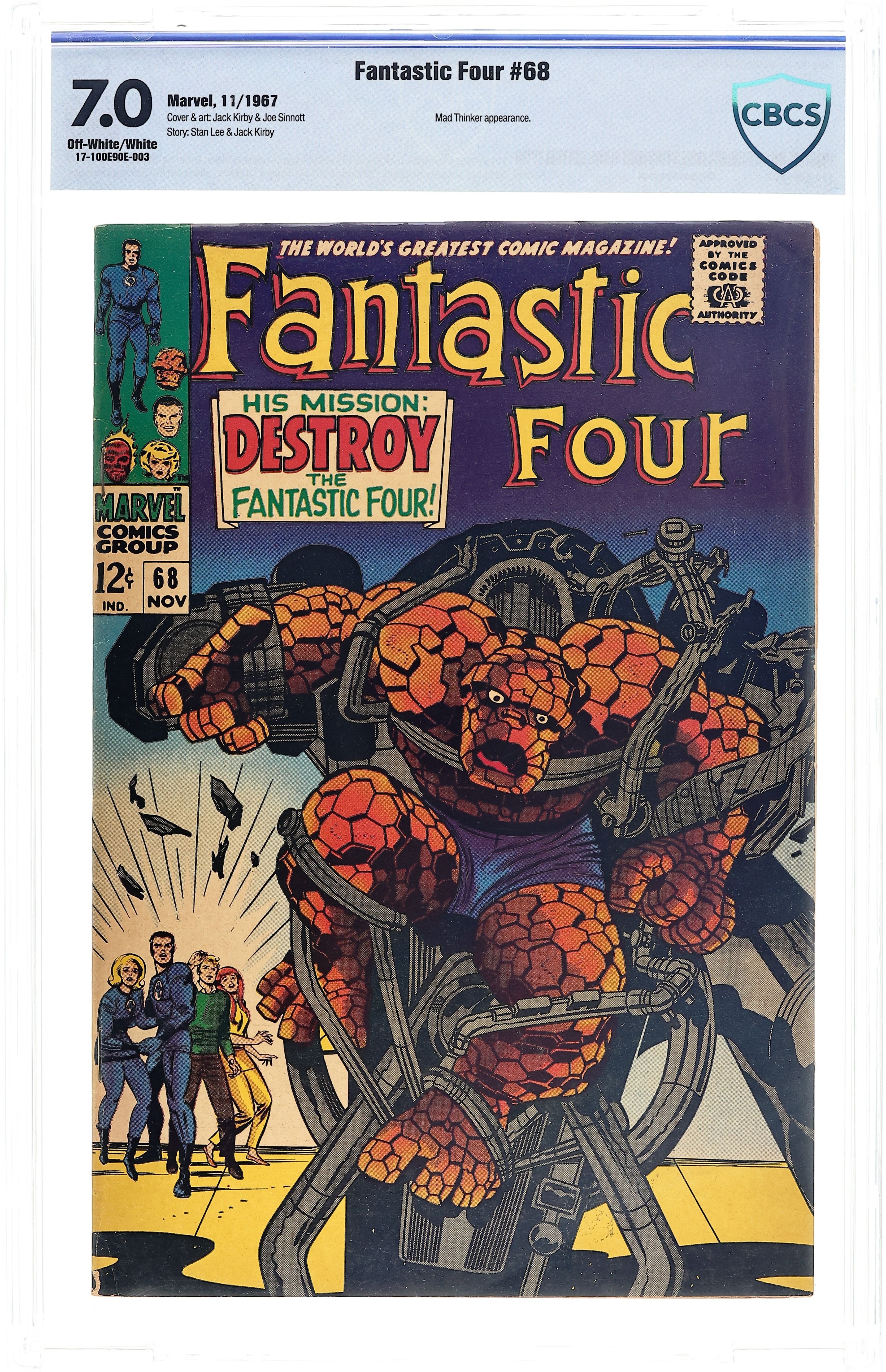 Cover pencils by Jack Kirby, inks by Joe Sinnott. His Mission: Destroy the Fantastic Four!, script by Stan Lee and Jack Kirby (co-plot), pencils by Jack Kirby, inks by Joe Sinnott; A mysterious villain, posing as the chemist Dr. Santini, aids Reed in attempting to find a cure for Ben. Crystal (of the Inhumans) appearance. 36 pgs. $0.12. Cover price $0.12.