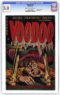 Ajax-Farrell's horror series Voodoo managed to stand out in the crowded field of pre-Code horror comics by dint of its sheer weirdness. Three men spend the night in a haunted lighthouse. A wife's hatred of her husband's undertaking job drives her murderously insane. A woman poisons her lover's wife, resulting in madness and revenge from the beyond the grave. Corpses of the Jury; Death Light?; Man-Killer; Ghoul for a Day; The Spiteful Spirit. 36 pages, Full Color. Cover price $0.10.