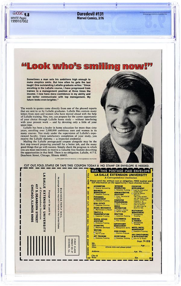 Tags: Marvel Legacy Numbering: Daredevil (part 131), DaredevilDaredevil (1964 1st Series) 131 CGC 9.8