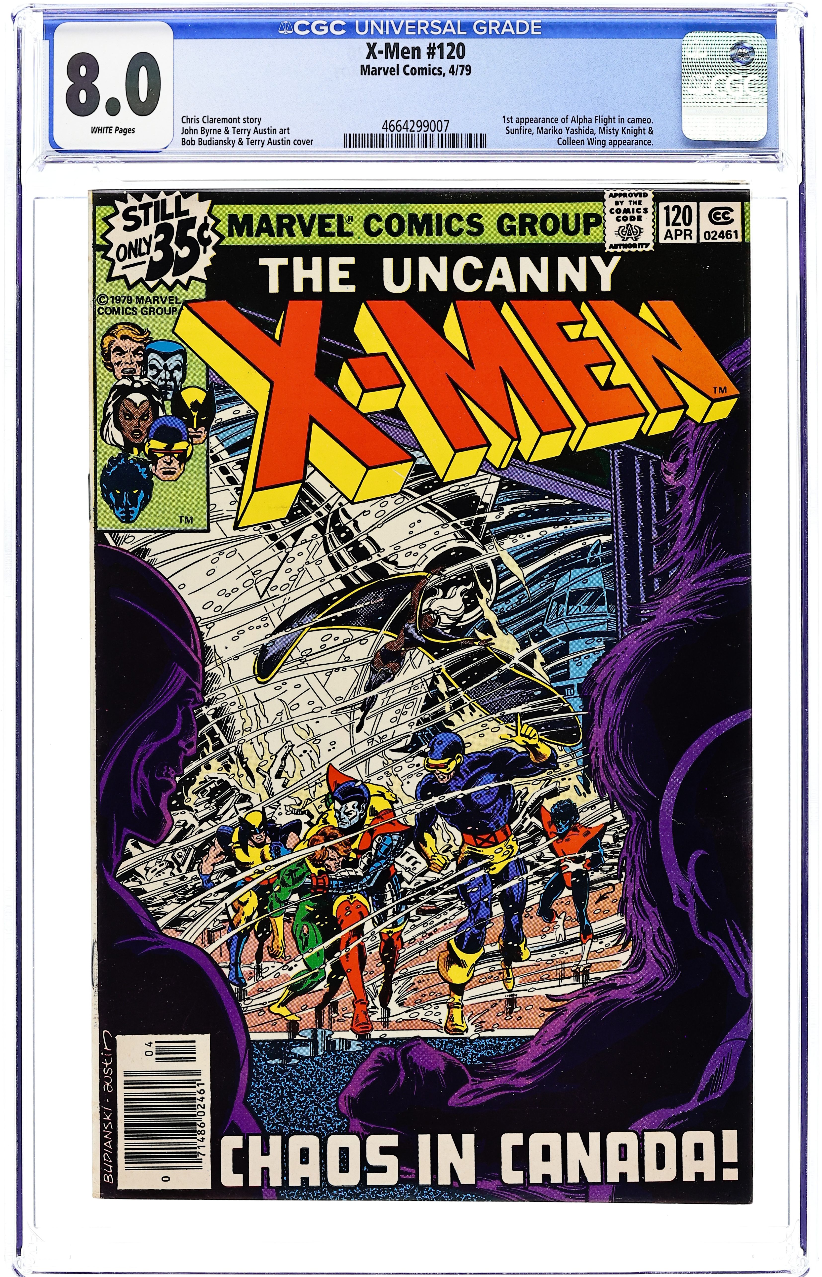 "Wanted: Wolverine! Dead or Alive!" Part 1 of 2. Guest-starring Alpha Flight (1st appearance cameo). Story by Chris Claremont and John Byrne. Art by John Byrne and Terry Austin. Wolverine's past comes back to haunt him yet again. First the Canadian government sent its super-agent Vindicator to retrieve the awol operative (see Uncanny X-Men #109). But when the X-Men proved too much for the lone Canadian super-hero. This time they will send a whole strike force and not even the X-Men may be powerful enough to stop them getting what they want. 36 pgs. Cover price $0.35.