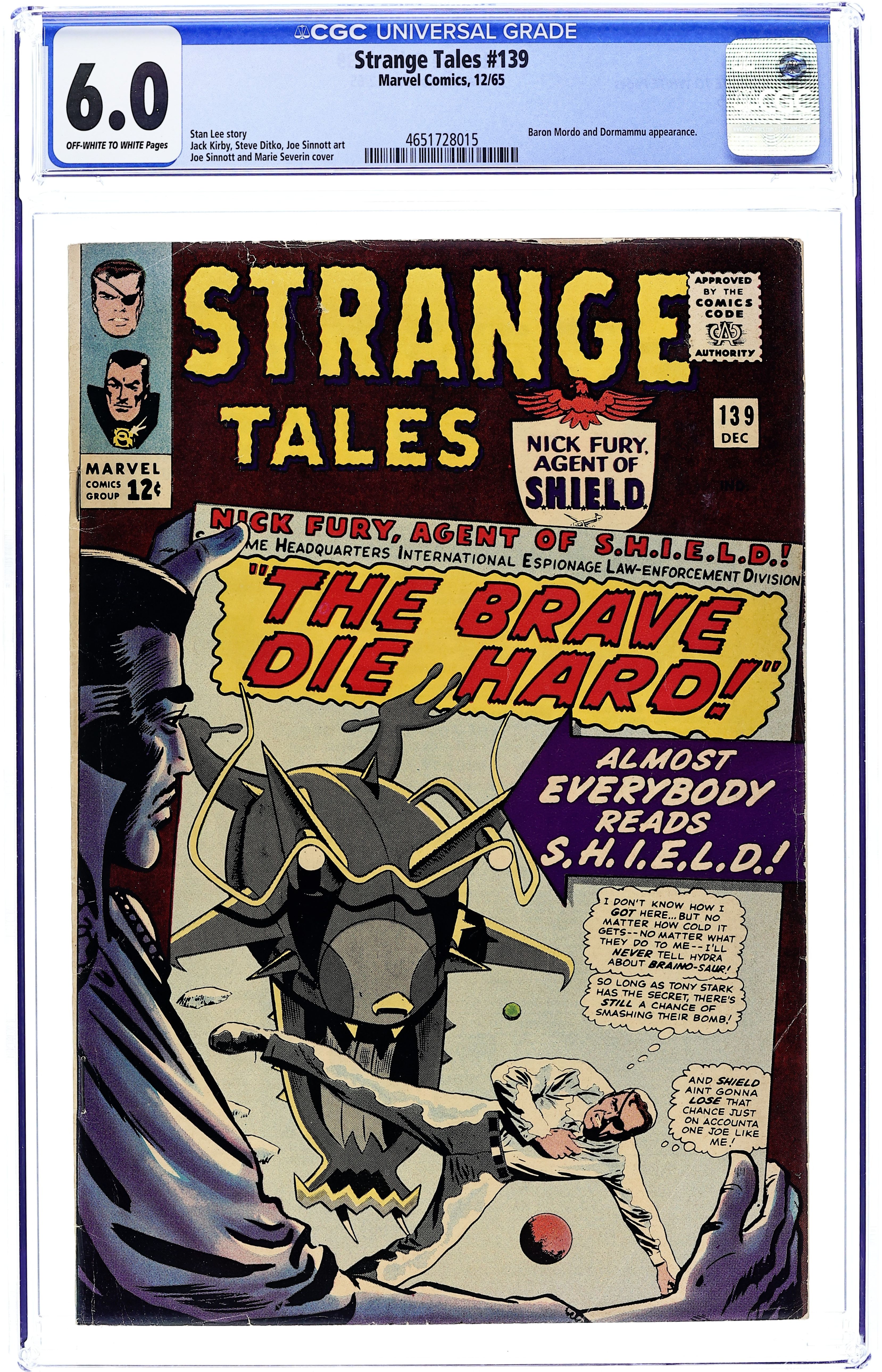 Cover pencils by Jack Kirby, inks by Chic Stone. Doctor Strange reprints: "The Defeat of Dr. Strange" (from Strange Tales 130), script by Stan Lee, art by Steve Ditko; Dormammu agrees to give Mordo power without limit so that he may destroy Dr. Strange; In Tibet, Mordo and two followers attack; Strange manages to whisk his aging mentor to safety; As Strange leaves his mentor with a loyal hermit, Dormammu sends spirits to search for him; Strange attempts to lure the spirits away from his weakened mentor; In Hong Kong, Strange contacts The Ancient One's accountant, who gets him a passport while he rests. "The Hunter and the Hunted" (from ST 131), script by Stan Lee, art by Steve Ditko; In the far East, Strange is on the run from Mordo and his minions, unaware that Mordo's increased power comes from Dormammu; As Mordo forcibly recruits more followers to search for Strange the mage makes plans to hop a plane to New York City; The Wraiths discover him, and only by conning them into believing he's vanished is he able to make his getaway. 36 pgs., full color. Cover price $0.25.