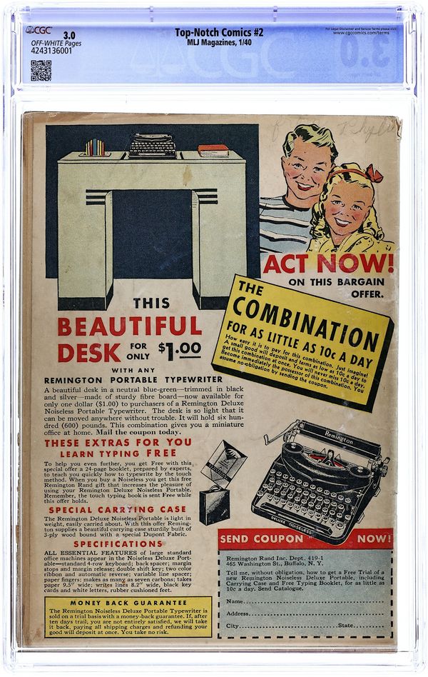 Published Dec 1939 by MLJ Magazines.Top-Notch Comics (1939) 1 CGC 2.5